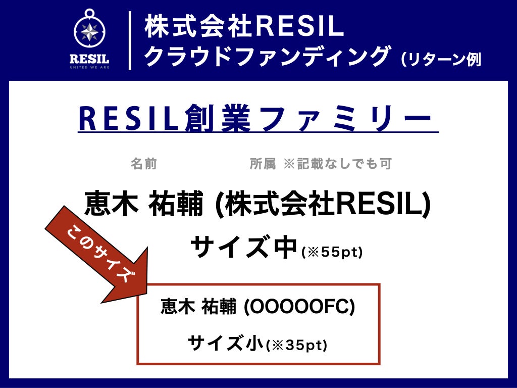 (株)RESILの創業ファミリーとしてお名前をホームページに記載させて頂きます!(文字サイズ : 小)