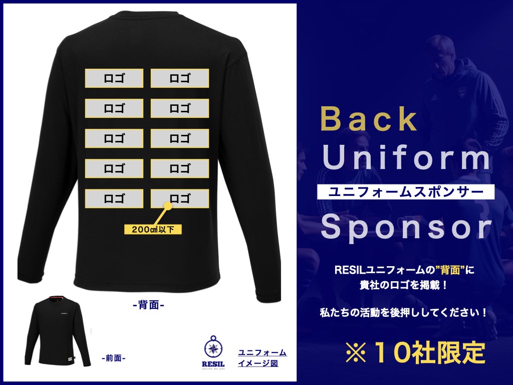 ◎RESILが活動する際のウェア(背面)に、貴社のロゴを掲載させていただきます。