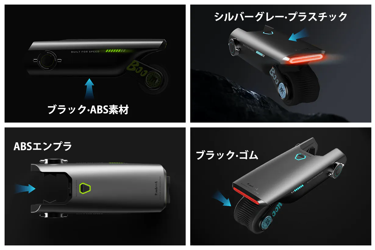 デバイス本体はABS素材とプラスチックで構成されます。表面は特別な加工技術で処理され、美しさと耐久性を兼ね備える。取り付け部分はABSエンプラで作られており、より丈夫で耐久性があり、腐食に強いです。また、ホイール部分は耐摩耗性があるゴム材料で作られており、長寿命で使用できます。
