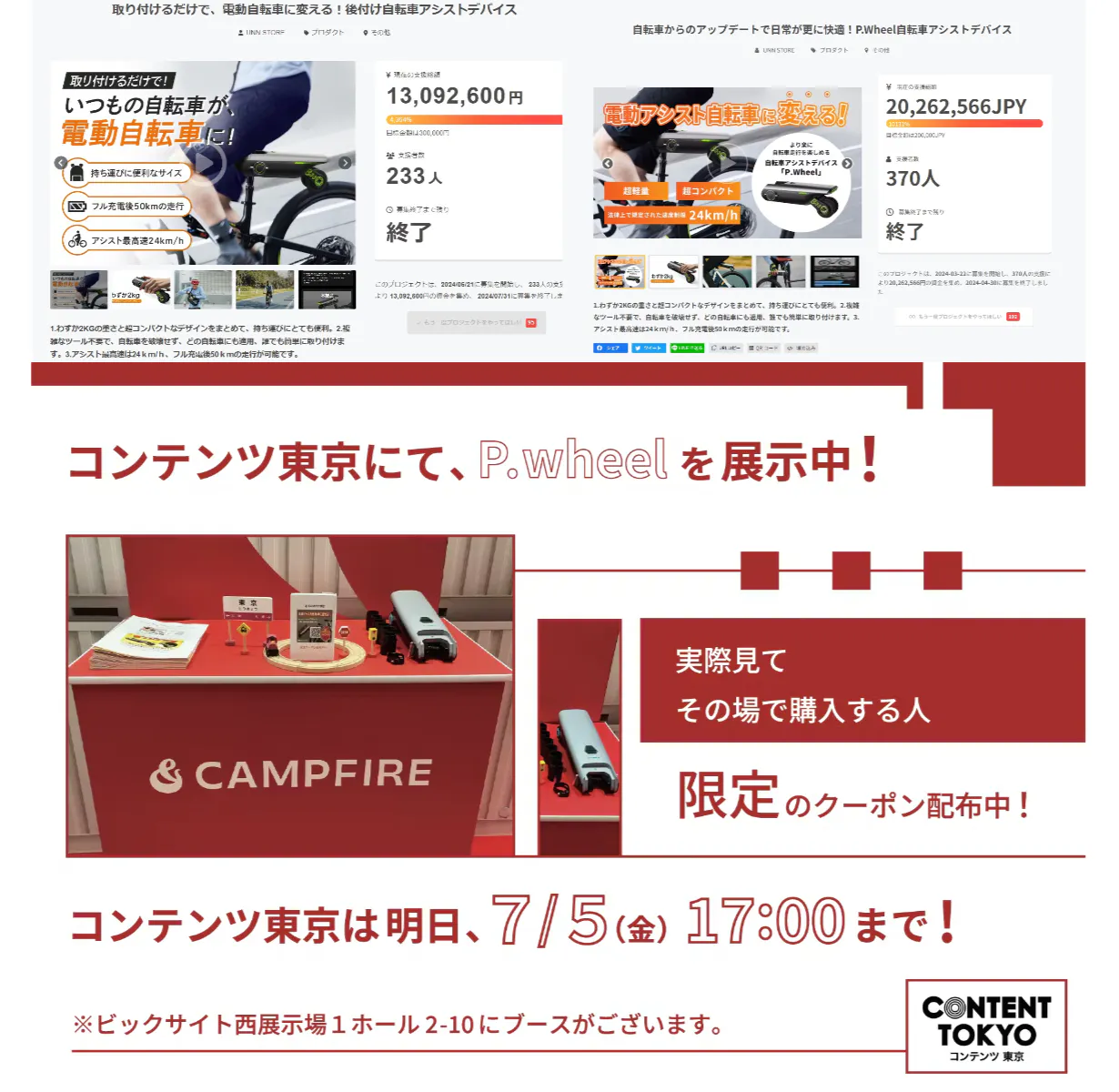 ※リターン品の配送が完了するまで、迅田国際株式会社は「P.Wheel」の日本における独占販売権を有する正規代理店です。