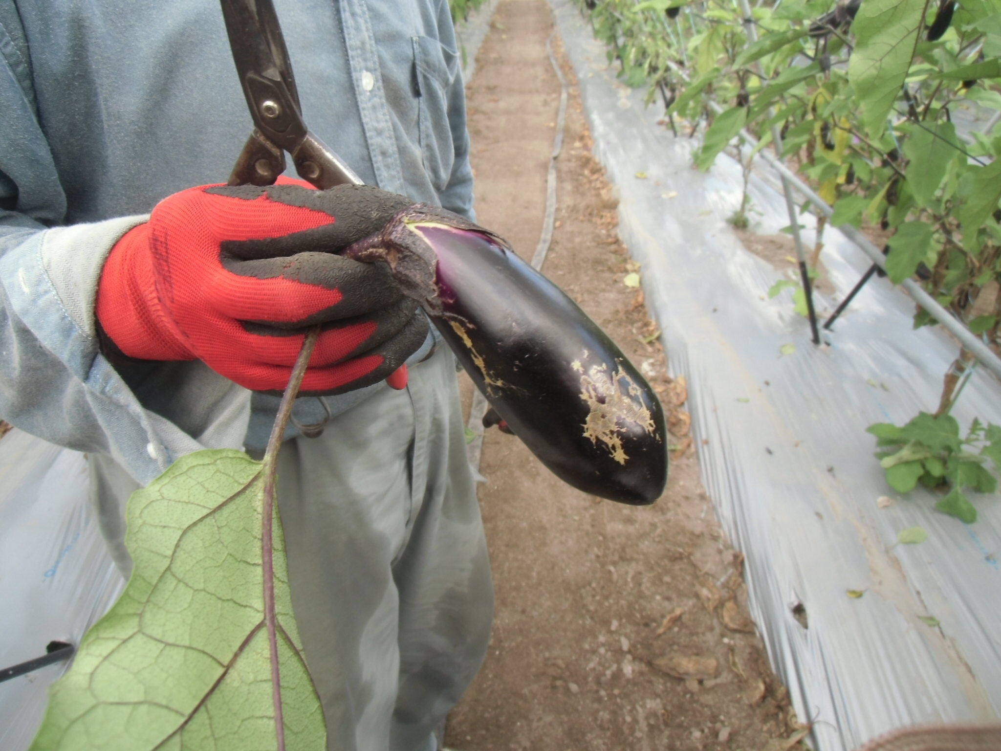 私がこのプロジェクトを思いついたきっかけは、総合の学習で食品ロスの勉強をしたことでした。夏休みに入り、校長先生と地域のナス農家にお話を聞きに行き、キズがついたり、サイズが小さいものや大きすぎるナスがコンテナ1つ分以上一日で廃棄されていることが分かりました。