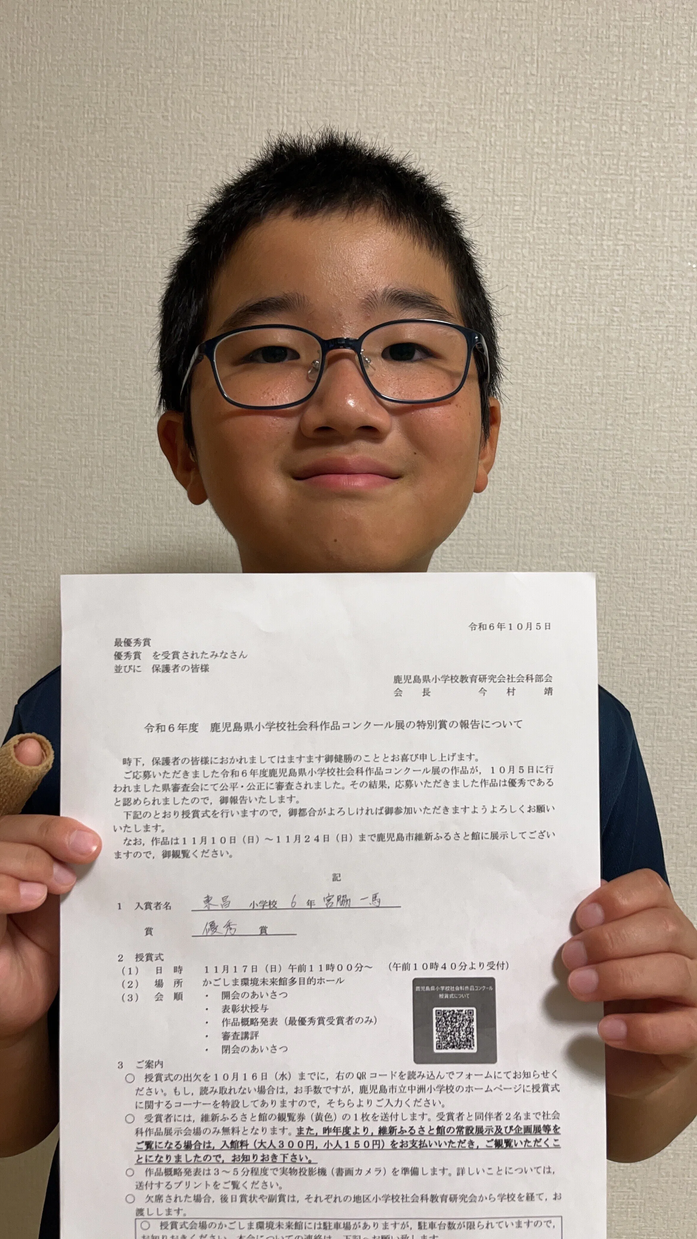 2024/10/20 19:31こんにちは!宮脇一馬です。校長先生からご連絡を頂きました。夏休みの自由研究が県の優秀賞に選ばれました。たくさんのご協力、このような貴重な機会を頂き、ありがとうございます。ナィスなカレープロジェクト引き続きよろしくお願い致します。 もっと見る