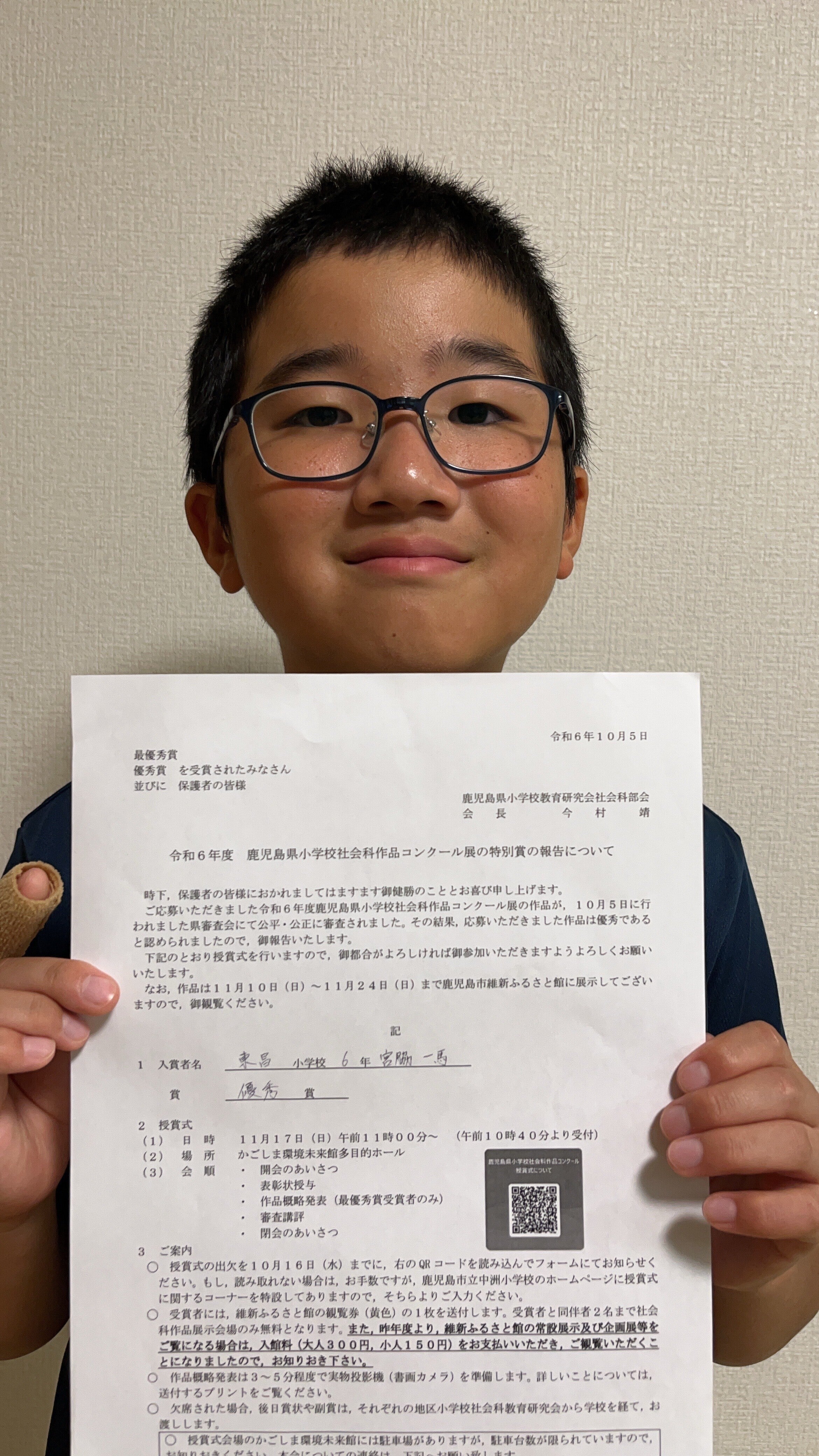夏休みの自由研究が県の優秀賞に選ばれました!