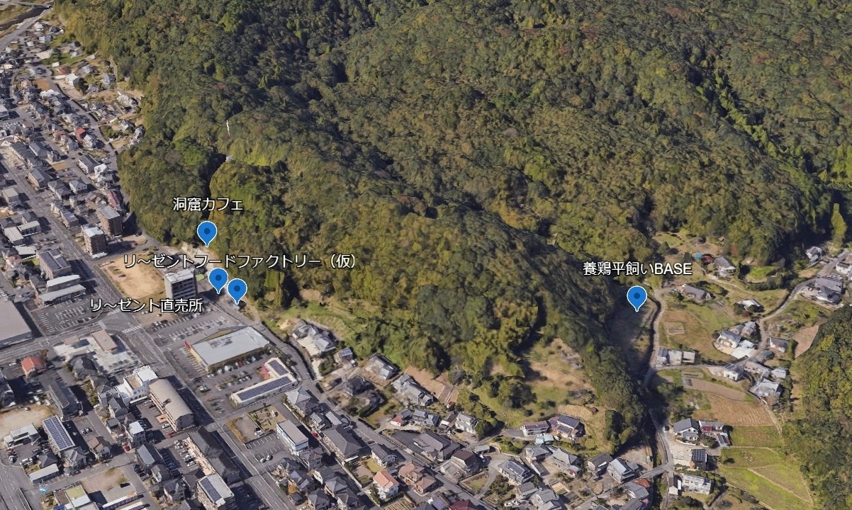 さらに面白い点として、この画像の左上あたりに3つほどの洞窟があります。ニワトリたちは夏の暑さに弱く、産む卵の数が減ってしまったり体調を崩してしまうことがあります。それを防ぐために、常時10℃後半をキープしている洞窟の空気が鶏舎に流れるようにしたいと考えています。特に機構を設けなくてもそばに立つだけで空気が出入りしているようなので、ニワトリにとって日本初の環境になると思います!
