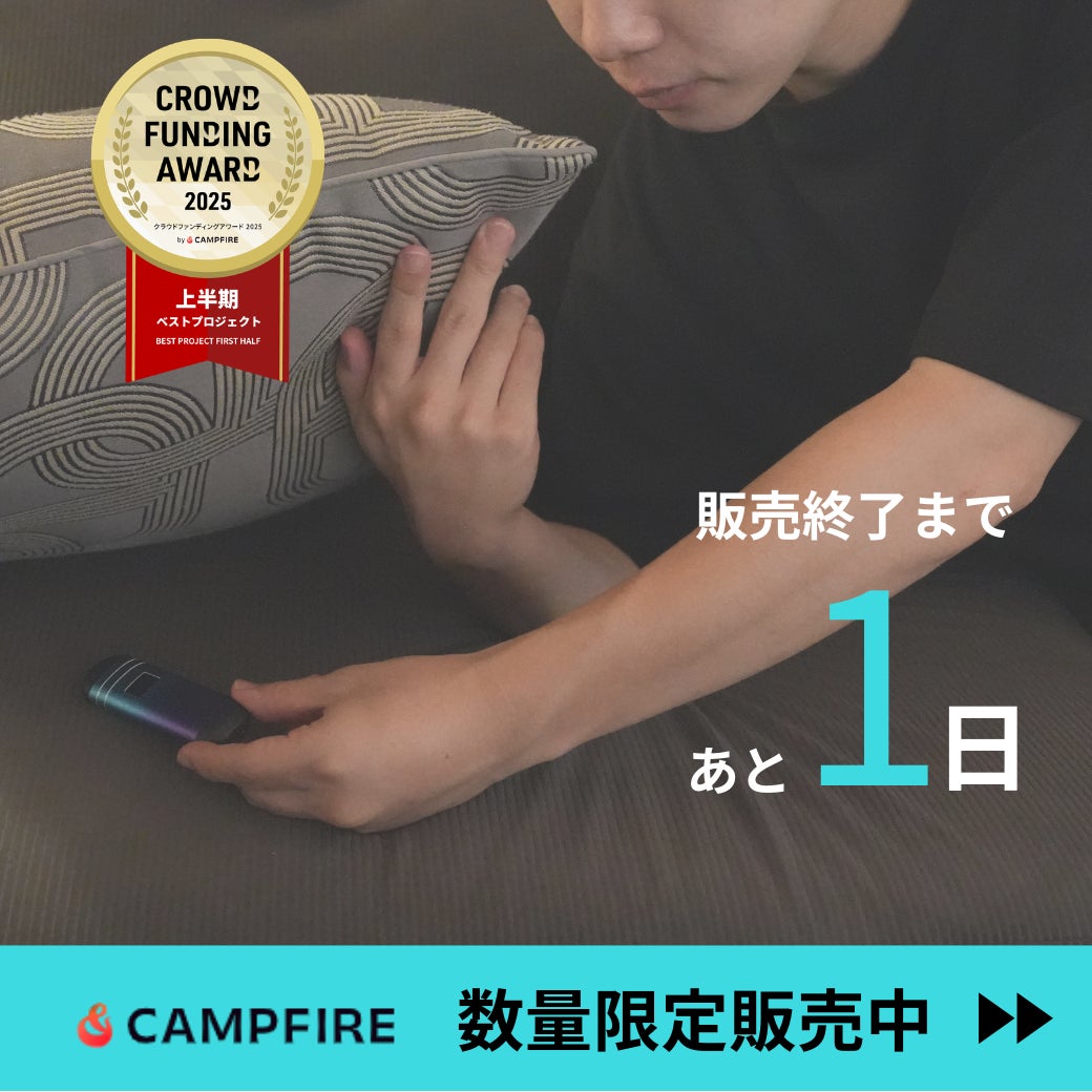 2026/04/15 21:00いつも応援いただきありがとうございます。本プロジェクトも終了まで残り数時間となりました。クラファン受賞の骨伝導スリープスピーカーはこちら▶骨伝導スリープスピーカーは、やさしい音でリラックスしながら眠る習慣をサポートします。すでに2,200人以上の方にご支援いただきクラウドファンディングアワードを受賞したアイテムです。技適取得済みの安心して使える設計ですのでこの機会にぜひご覧ください。プロジェクト終了まであと残り数時間ですが引き続きよろしくお願いいたします。 もっと見る