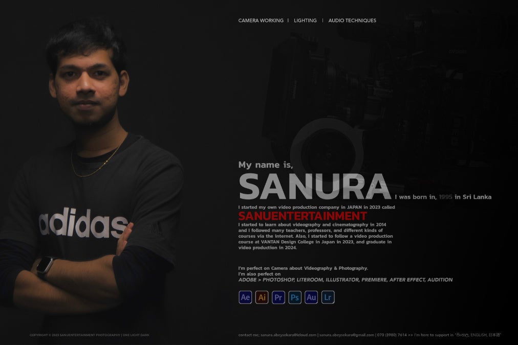 これまでに多くの写真や映像の依頼を受け、クライアントに喜んでもらえる作品を提供してきました。また、映像学校でも毎週日曜日に学び続け、技術を磨いてきました。現在も独学で学び続けており、フルサイズセンサー搭載のカメラを手に入れることで、さらに一歩進んだ作品を作り続けていきたいと考えています。