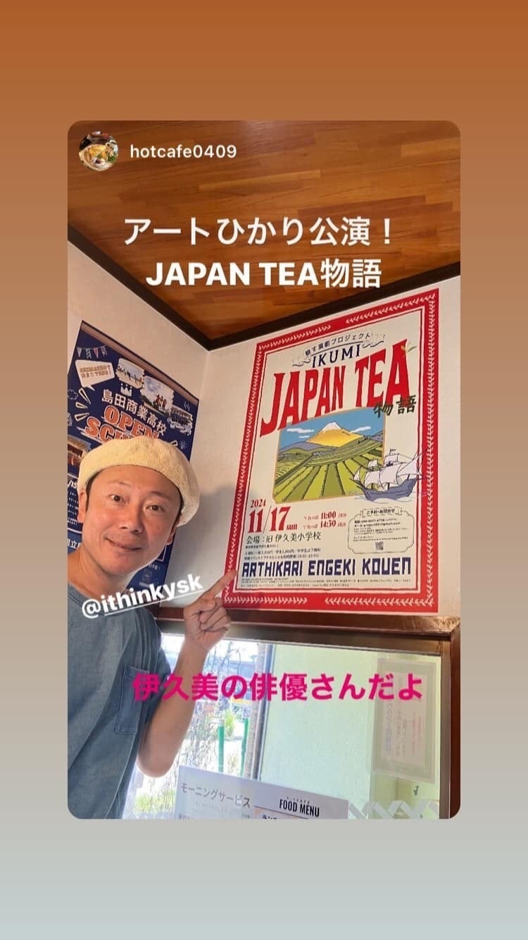 JapanTea物語。いよいよ来週に迫ってきました。先日は、公演会場となる伊久美小学校で、稽古させていただきました。出演メンバーの皆さんは東京、京都、藤枝、島田と散らばっているため、今回は藤枝と島田のメンバーにて。舞台監督さんも浜松から現地までやってきてくださいました。色々確認することができ、有意義な時間でした。また、伊久美小学校の独特な佇まいに、初めて訪れたメンバーたちが感激しているのを見て、跡地利用に揺れるこの小学校の魅力をあらためて感じました。そんな旧 伊久美小学校での演劇公演。ぜひ、見届けに、いらしてください!