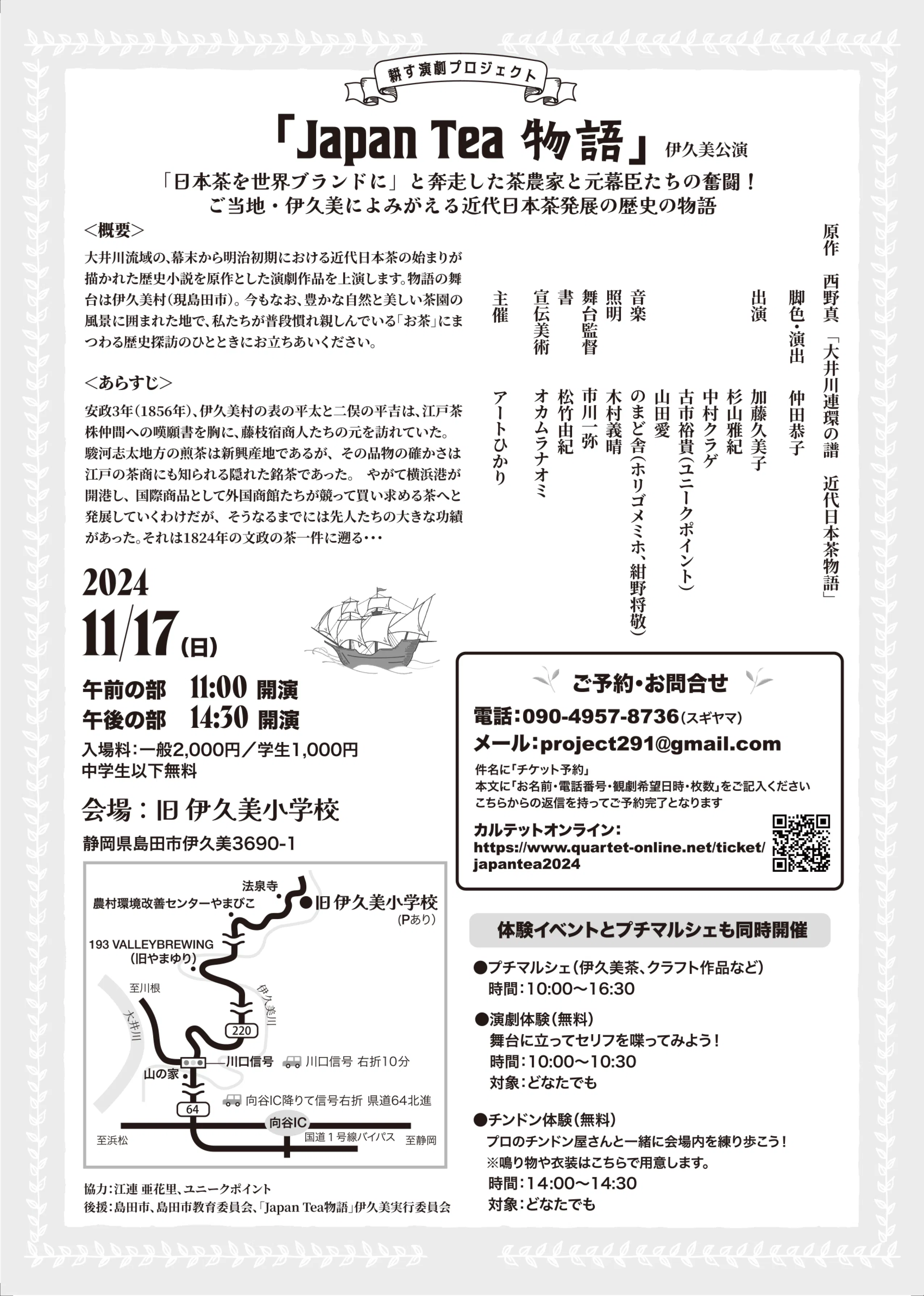 後援:島田市、島田市教育委員会、「Japan Tea物語」伊久美実行委員会