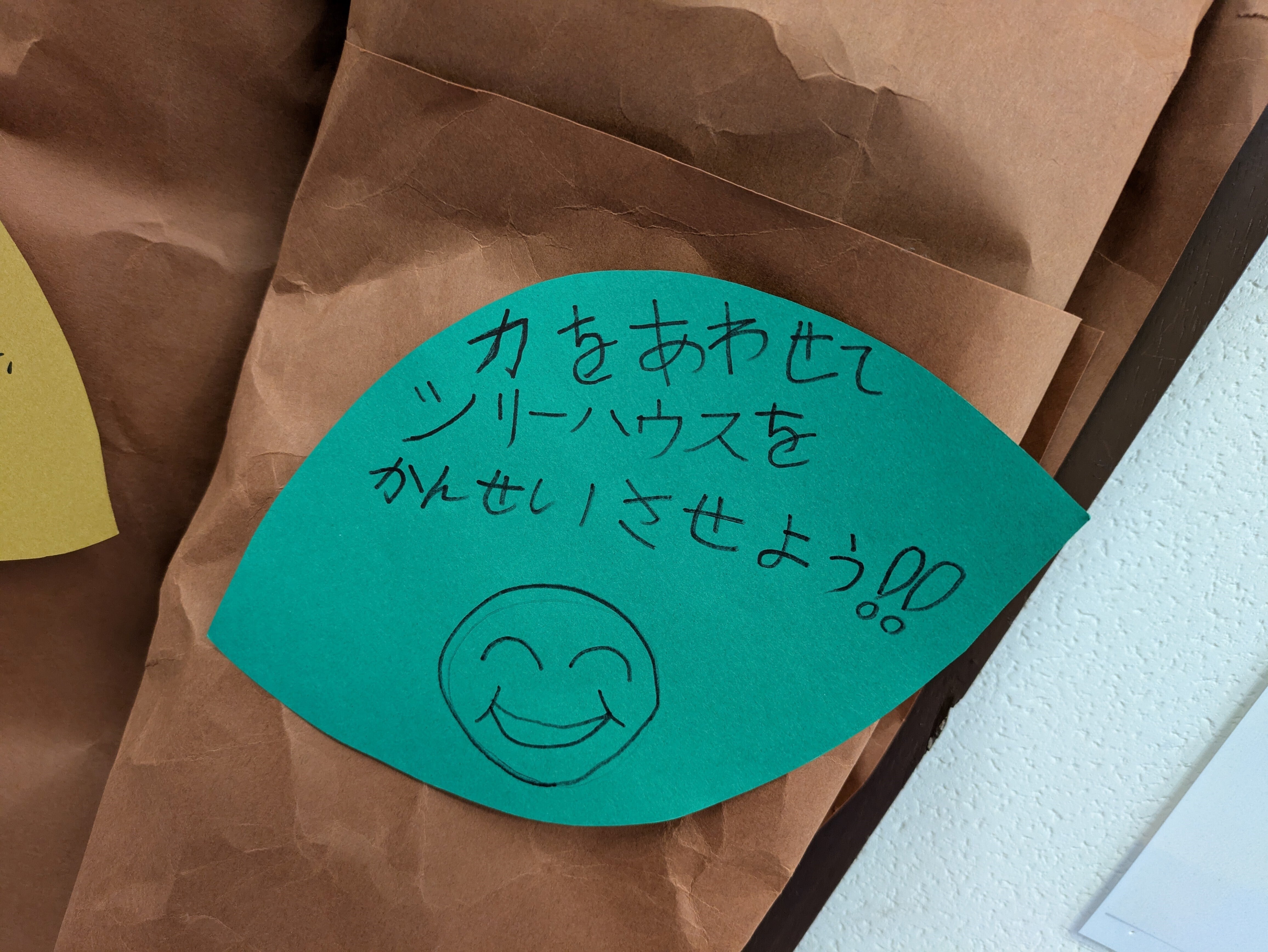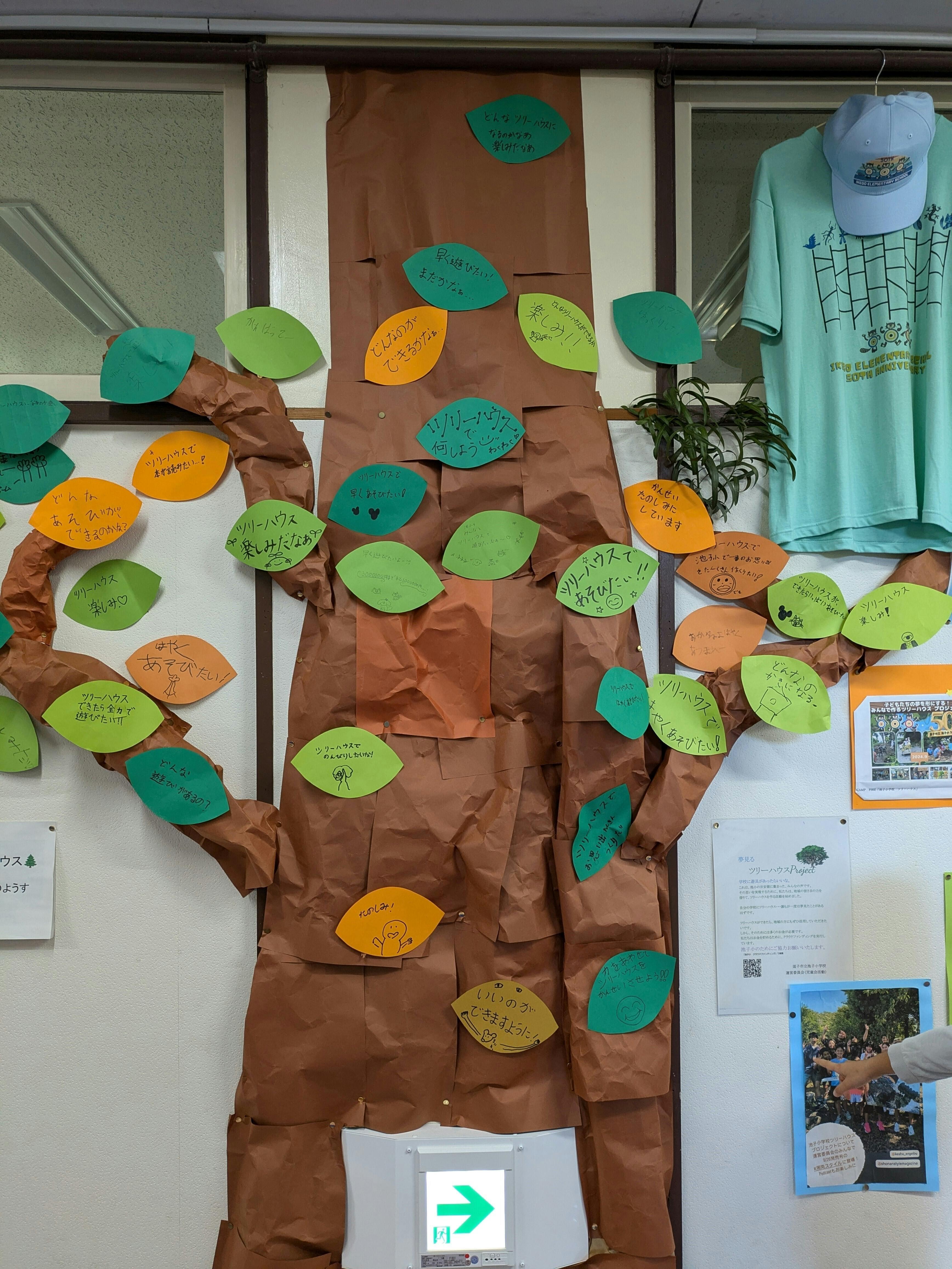 職員室前に大きな手作りの「木」ができました。