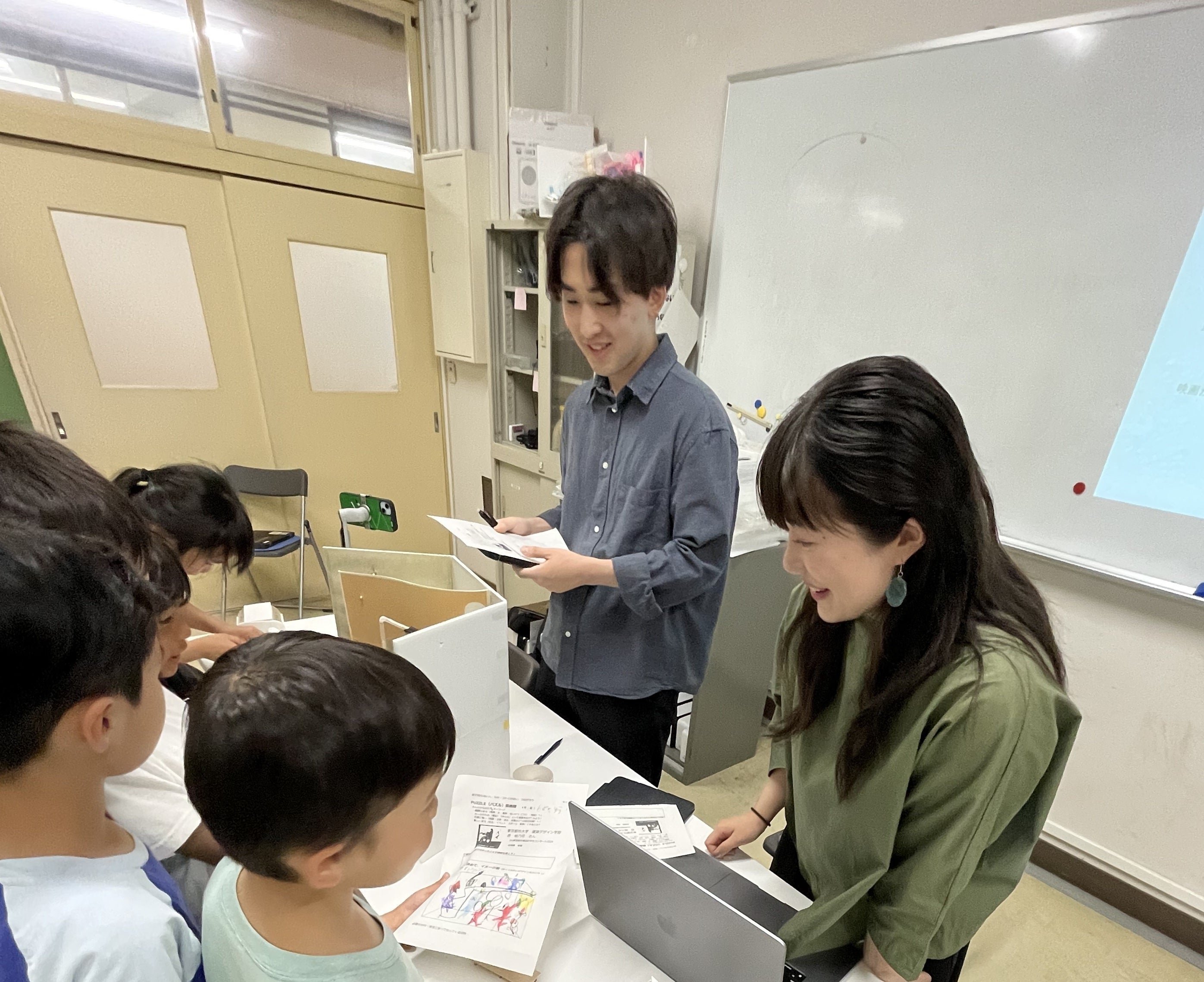 2023年、西さんが教育系のイベントで、池子小学校の図工を担当されている小林先生と出会ったことがきっかけで、2024年6月・7月の2回にわけて図工の出前授業をさせていただきました。