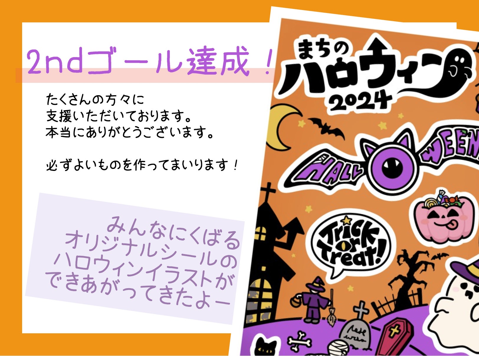 2ndゴール達成!!プロジェクト公開からたくさんの方にご支援いただき、2ndゴールとして設定していた目標金額30万円を突破しました!皆様にご支援いただけましたこと、心よりお礼申し上げます。集まった想いはみんなの笑顔につながっていくように使わせていただきます!そして2ndゴールで決めていた全員へのオリジナルシールも準備を進めております!お楽しみに!そして、ここでストップせず、3rdゴールを目指します!3rdゴール 40万円!ただ、『参加者全員にミニランタンをくばります!』とお伝えしておりましたが、もう開催2週間前となり、ランタンが間に合わなくなって配布できないという最悪の事態を考え、目標達成したときの内容を、変更したいと思います!・ミッションクリアのお菓子!・仮装大賞の賞品!・スポットのお菓子!この3つを豪華にする!これでいかせていただきます!といっても、もうだいぶ数ももらえて、満足いただけるはず、とは思っていますが、、それでももっと笑顔が増えるようにがんばっていきます!今週末には、参加者のみなさまには案内メールをお送りしますね!現在、カードのミッションを考え中。お楽しみに〜