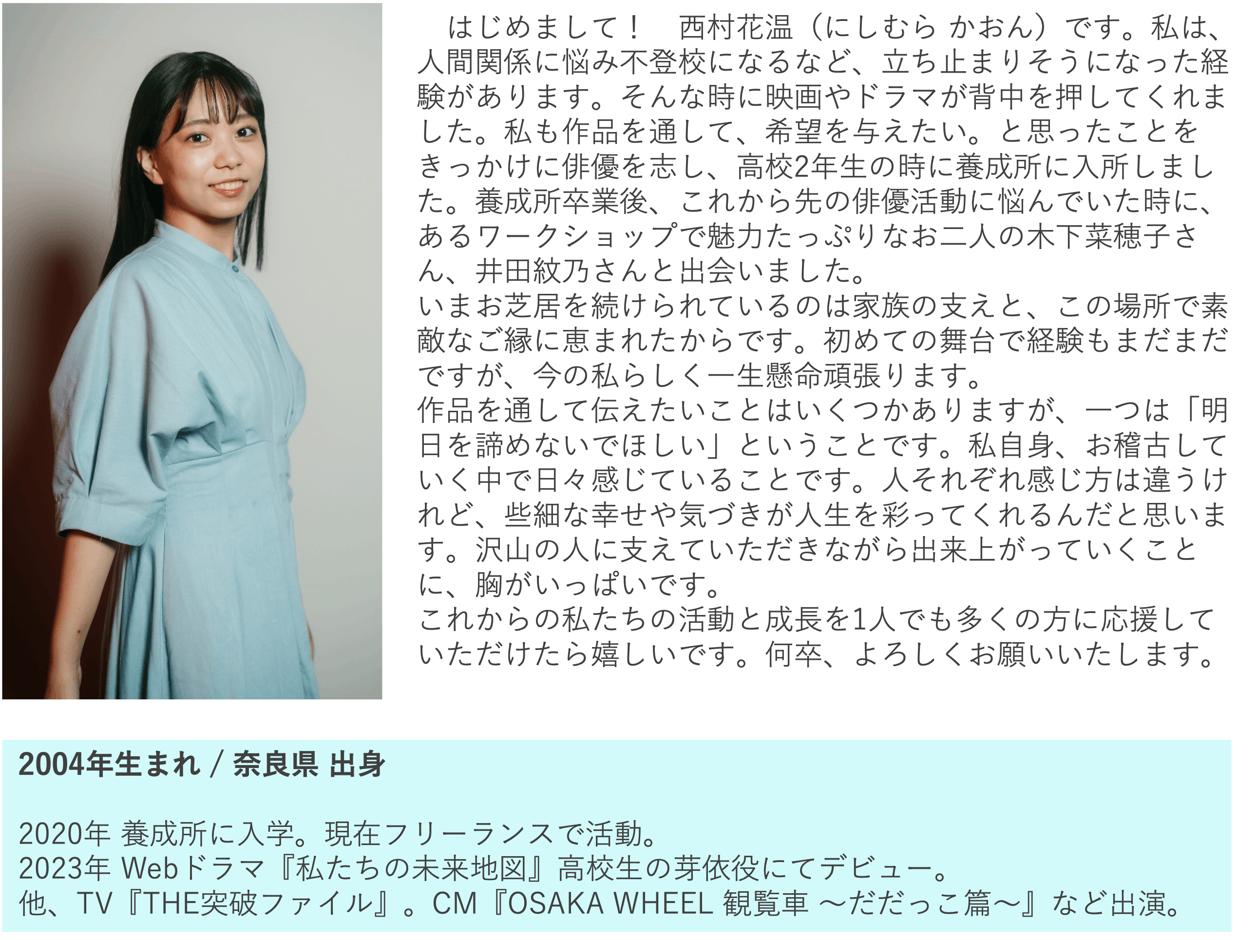 無口な少女役 西村花温 出演