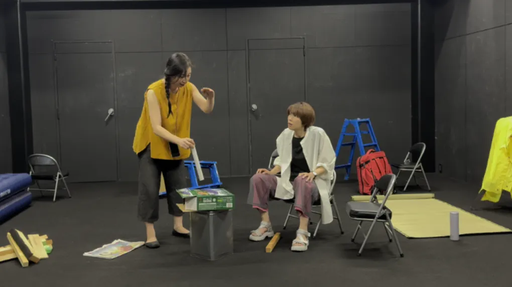 そこで、サミュエル・ベケット『ゴドーを待ちながら』の不条理劇に着想を得て、「待つ」という受け身の行為に希望を見いだす作品にしたいと思い、あらかじめ脚本や演出を置かず、俳優の強みである『演じる』ことを起点とした自由な発想のエチュード形式でシーンを積み重ね、自分たちで演出をする、今回の創作スタイルになりました。