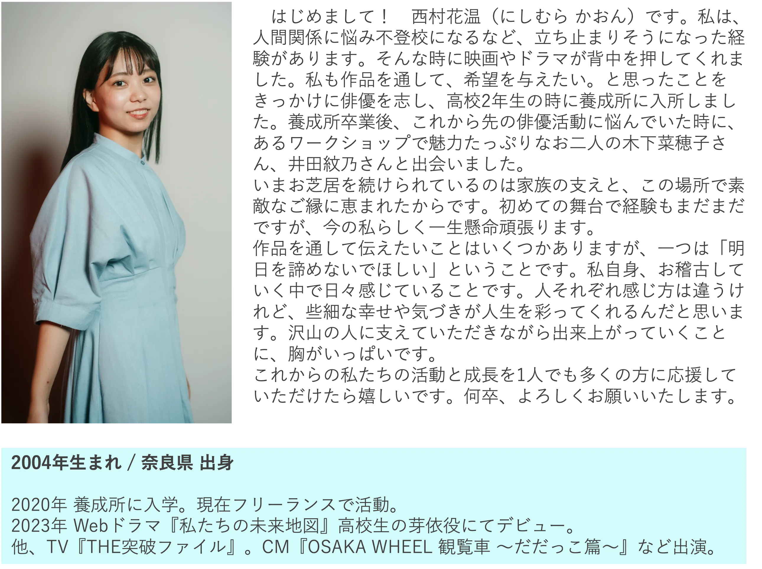 目的を決め、衝動にまかせて行動し、その瞬間に生まれた言葉を台本にしてゆく。自分たちでアイディアを出し合って私たちらしい新たな作品を生み出す! 台本ありきだったこれまでとは違い、本がないという状況はとても新鮮で楽しく、初めての挑戦になりました!!!