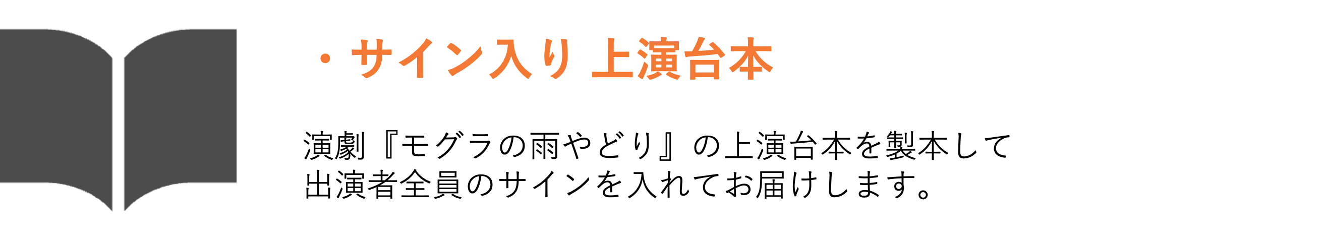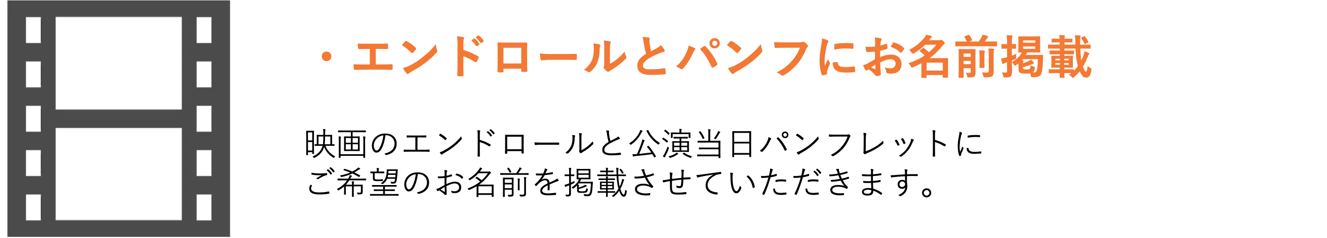 今回のクラウドファンディングの目的は、必要経費の補填と、この活動を未来に繋げていくために一人でも多くの方に「知っていただく、演劇・映画に触れていただく」こと。そのためグッズなどの豪華なリターンではなく、ご支援として舞台製作に直結する内容とさせていただきました。