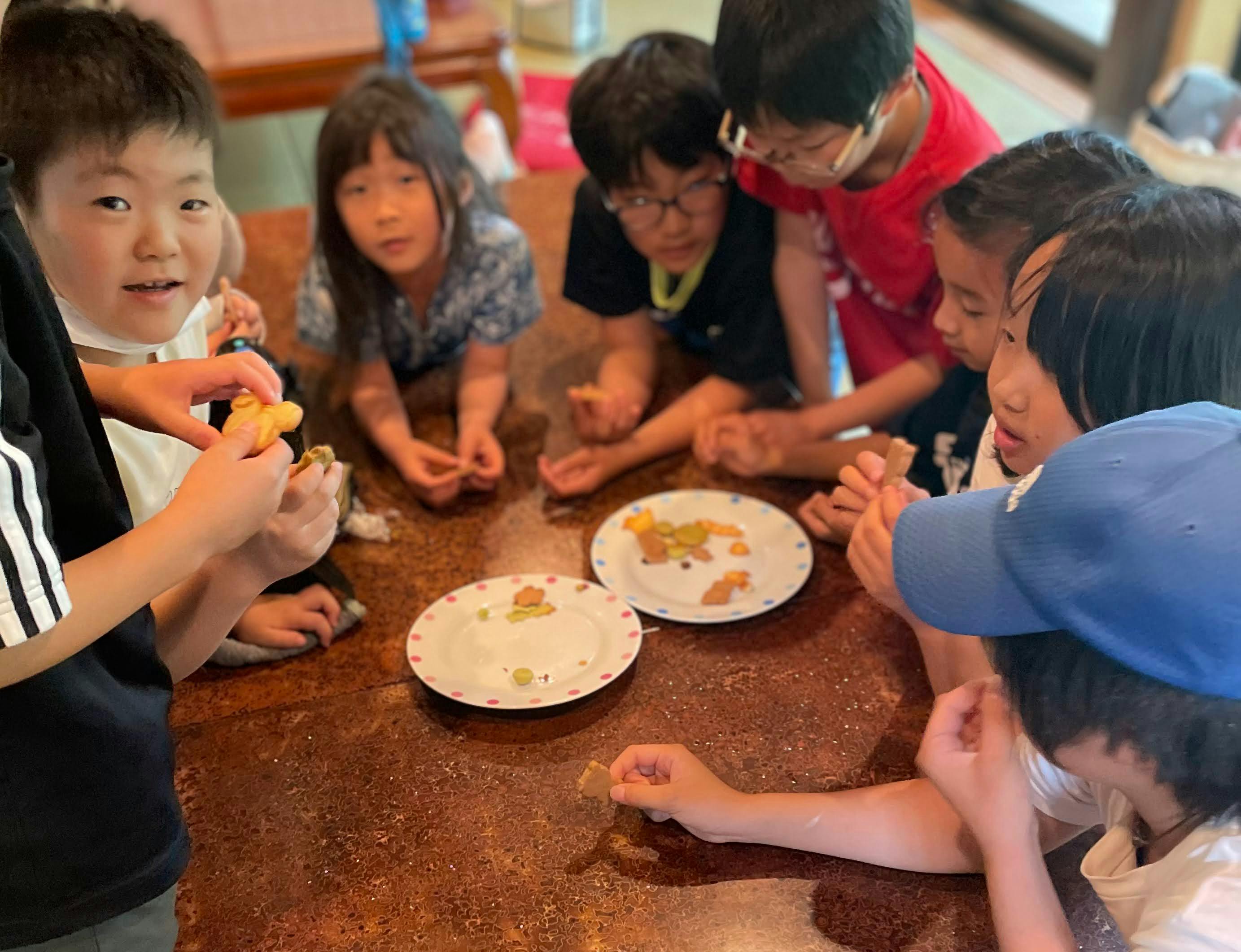↑他人だった子どもたちが肩を寄せ合い、兄弟の様におやつに群がる^^