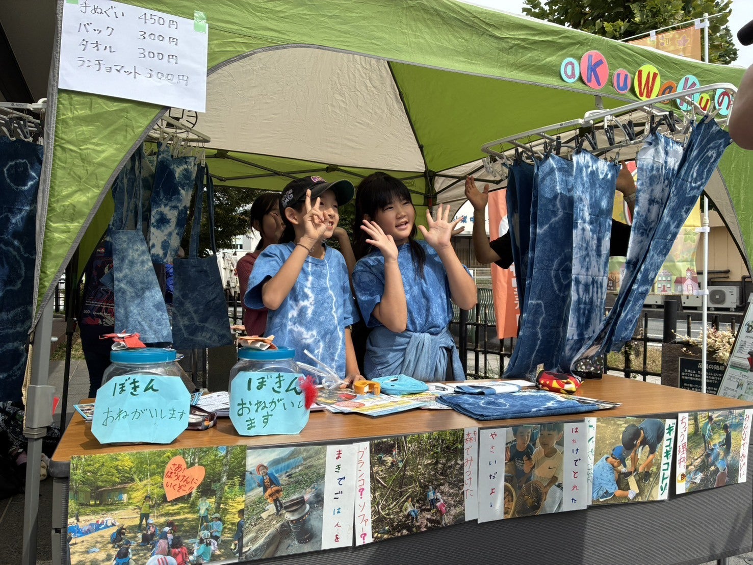去年までは子どもたちによる出し物とWakuWakuの家で飼っている保護犬「そらまめ」の飼ご飯代やワクチン代などを募金させていただいておりましたが、今回はさらに主体的に参加するため、先日のマルシェに引き続き子どもたちの手作りである藍染作品の販売も行いました。