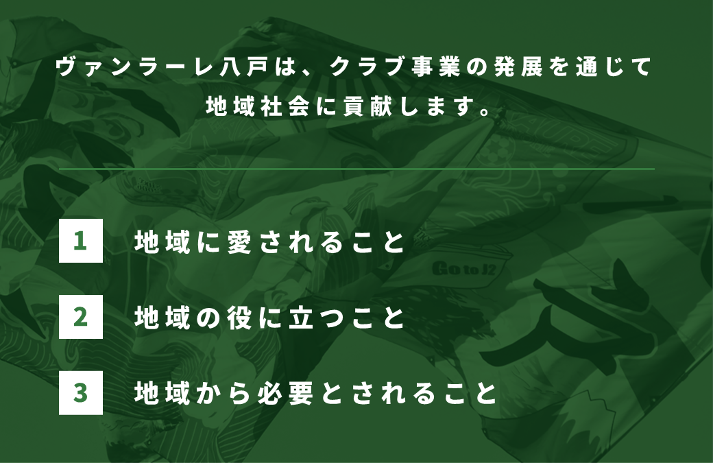 これまでヴァンラーレ八戸は、上記のクラブ理念を掲げて活動してまいりました。