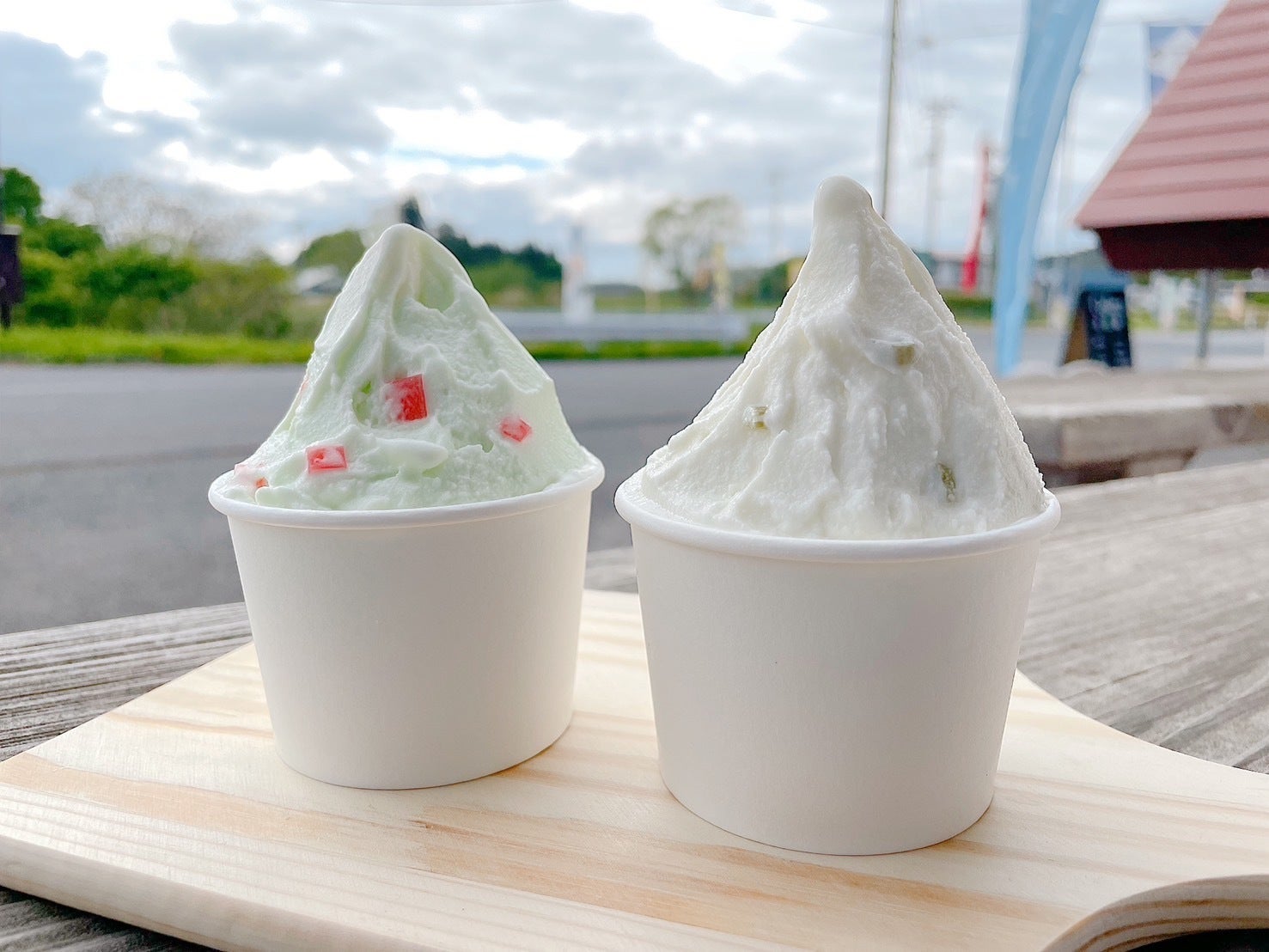 右はさらに激レアな、地域イベント期間のみ限定販売ジェラート「わさび」