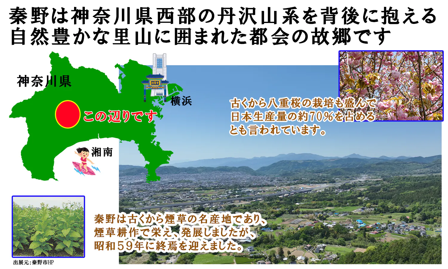 私たちの暮す「秦野」は神奈川県の西部に位置する魅力あふれる街です。