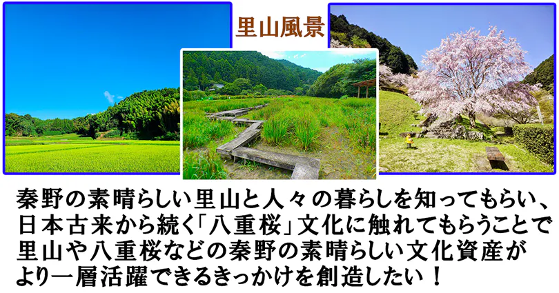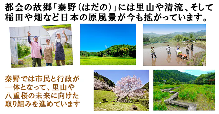 私たち「秦野八重桜協会」は、秦野の里山やその麓に広がる田畑、そして日本で有数の栽培数を誇る伝統的な「八重桜」を広く知っていただくこと、また秦野の未来に向けた取り組みに挑戦することを目的に、市民有志によって設立され、活動を行っています。