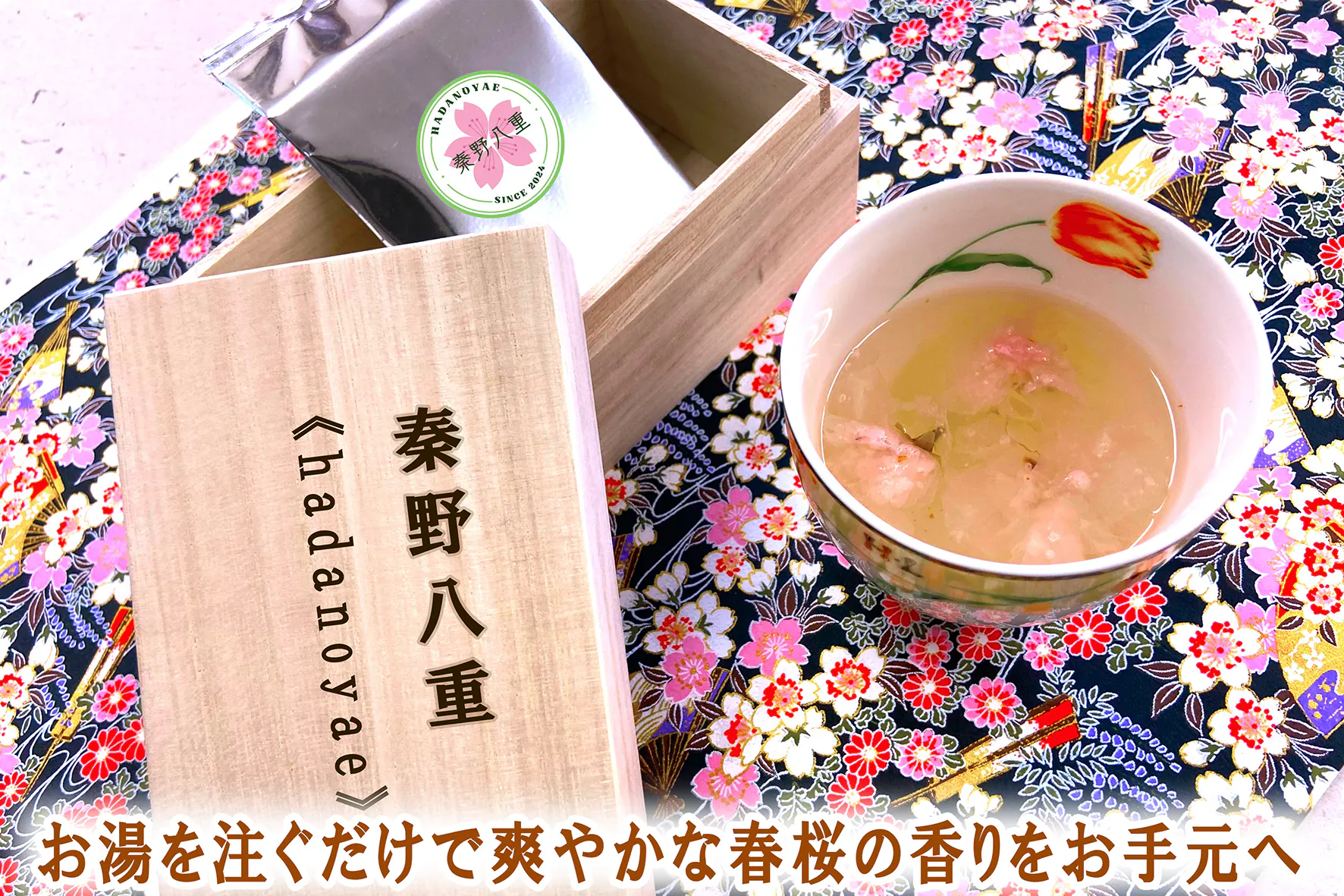 日本有数の栽培量を誇る「八重桜」を使用し、多くの方々の協力を得ながら、「秦野八重(hadanoyae)」という商品を開発しました。春の清々しい桜の香りをお楽しみいただきながら、リラクゼーションと美肌の効果が期待できる「桜湯」をぜひご堪能ください。