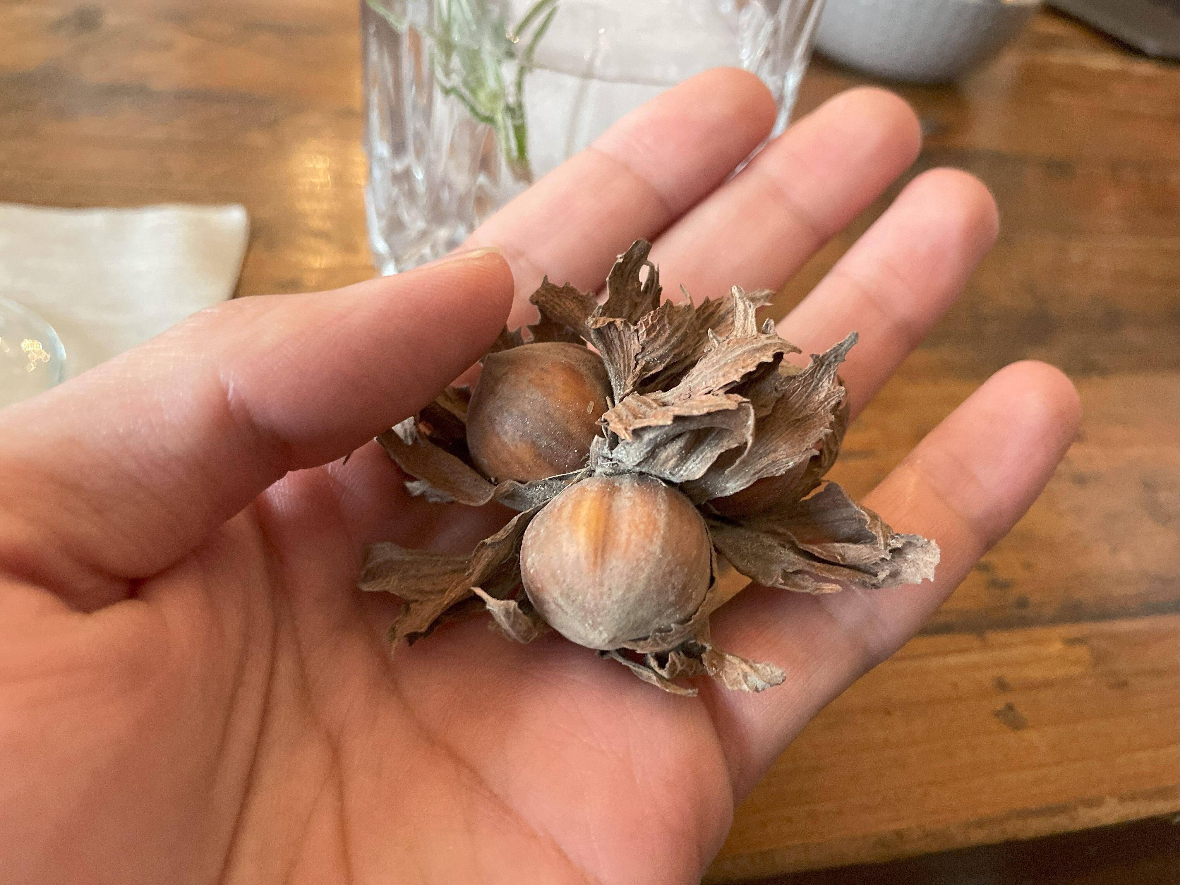 収穫したヘーゼルナッツこのヘーゼルナッツは、白トリュフに並んでウルフレストジン・アルバに使用されている主要ボタニカルです。
