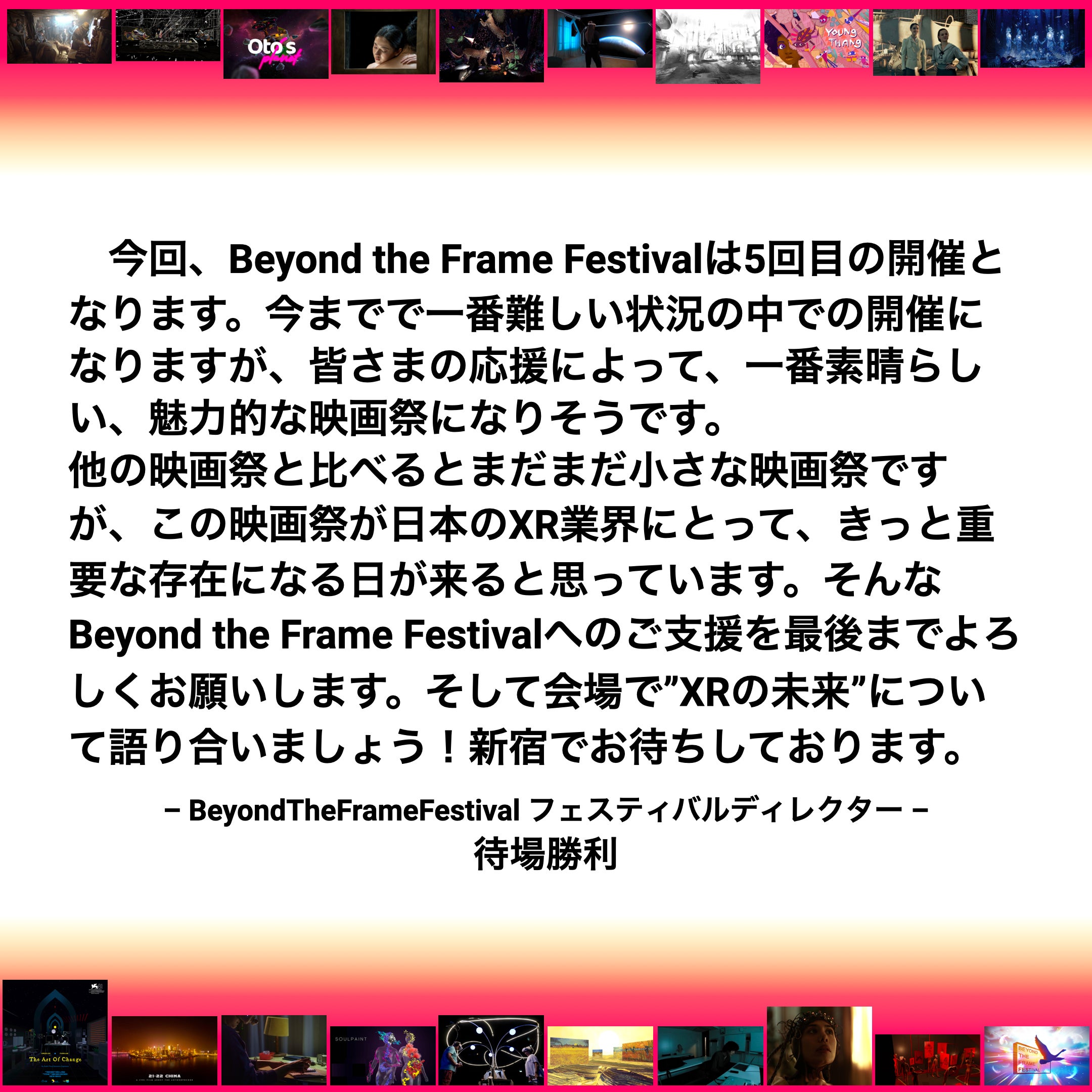 Beyond the Frame Festival 2024 フェスティバルディレクター待場勝利よりメッセージです。