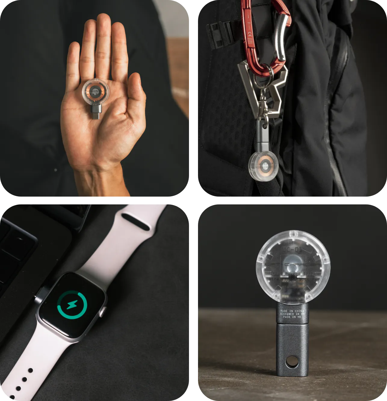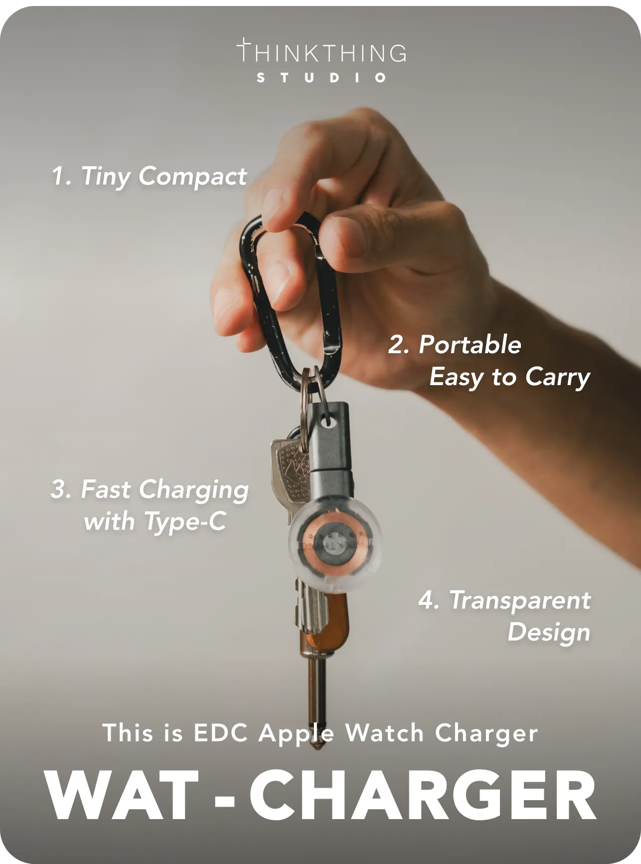 キーホルダー感覚で持ち運べるスケルトンデザインのApple Watch充電器「WAT-CHARGER」が登場しました。