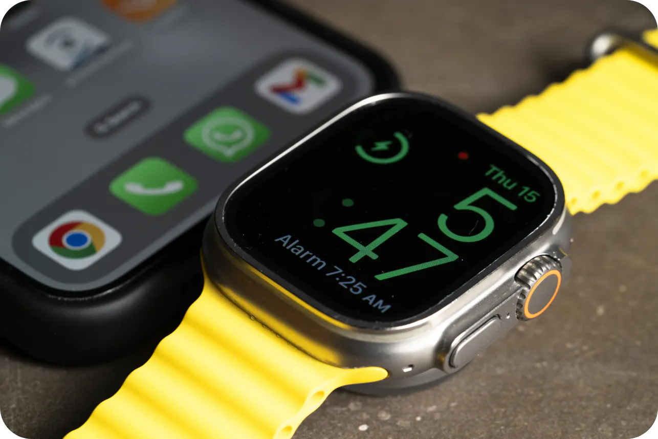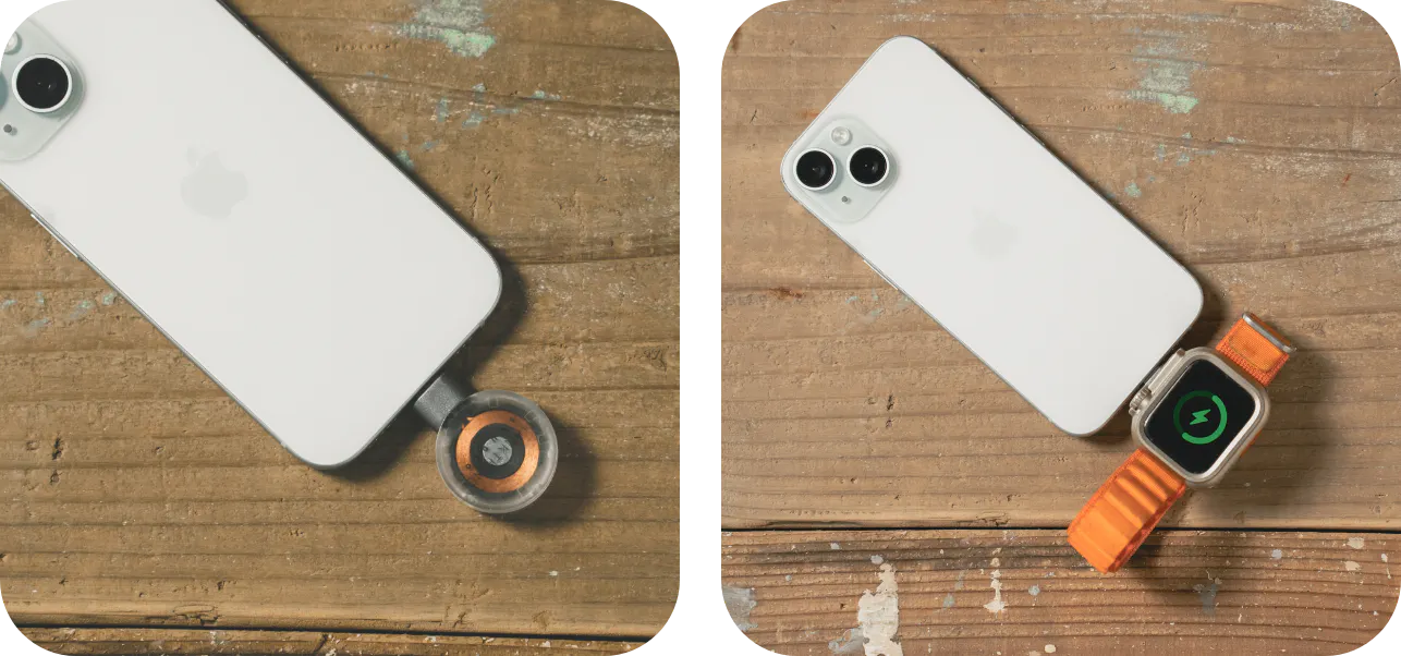 iPhone 15なら、出先でもスマホからApple Watchを充電できます。