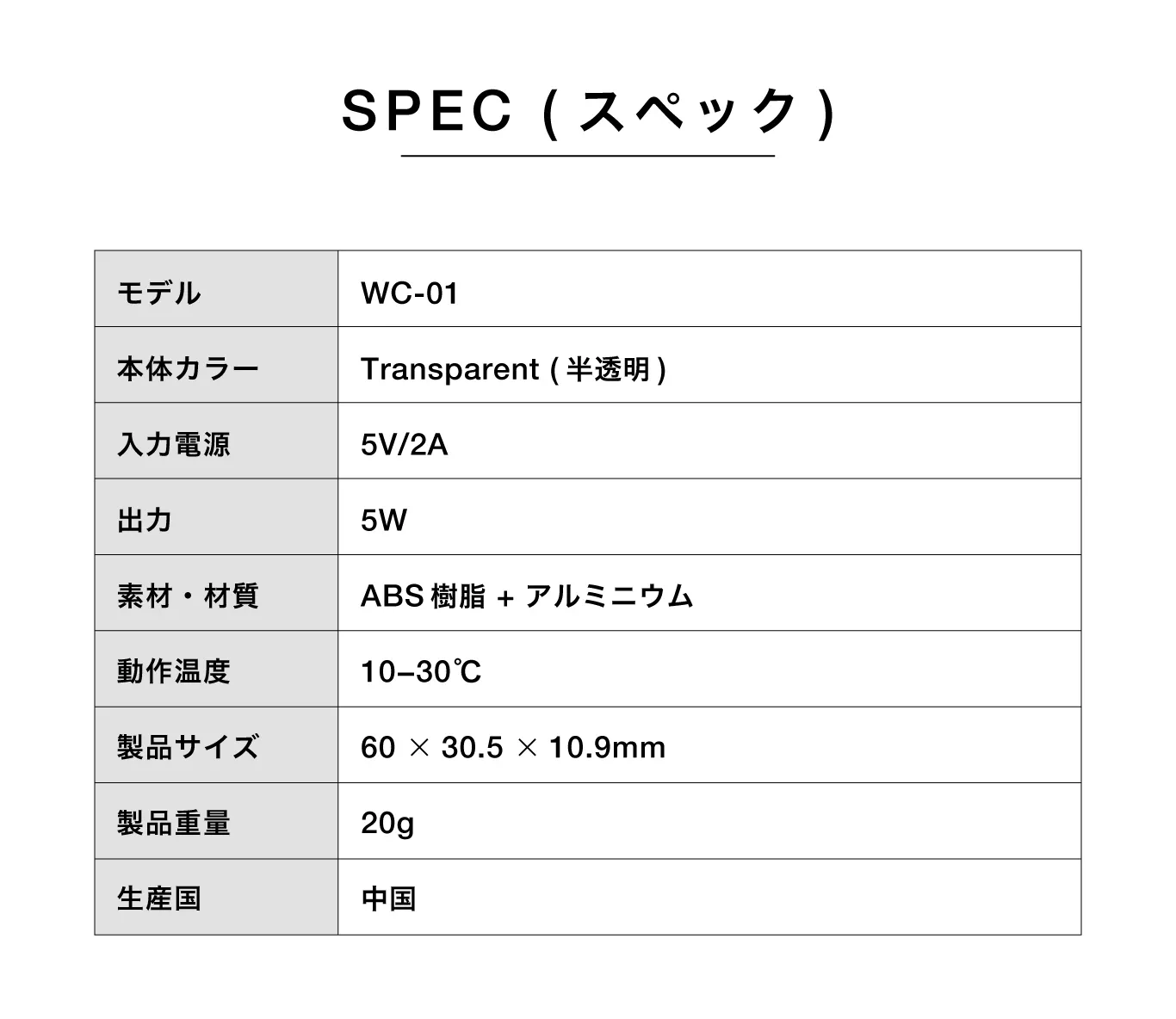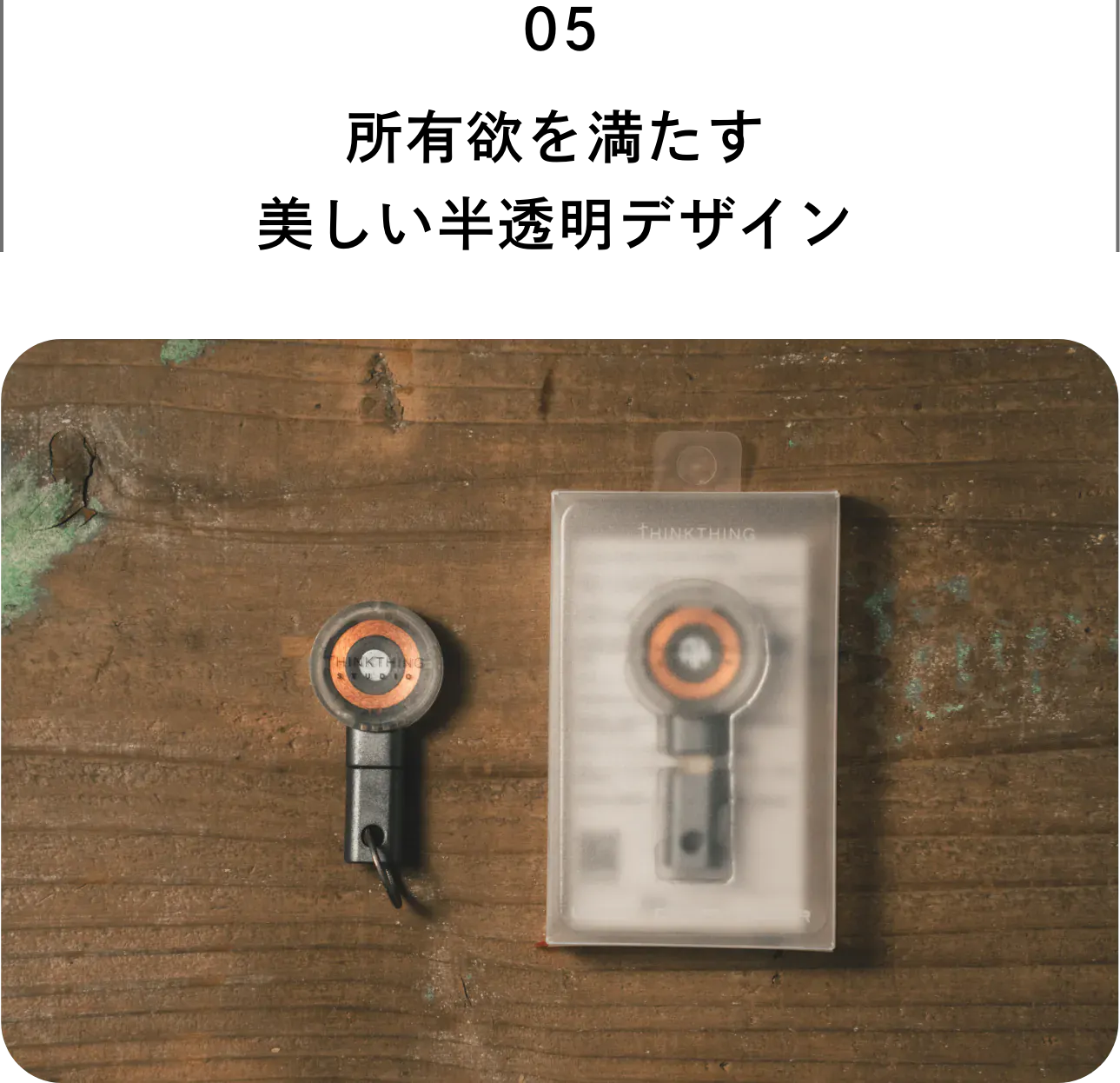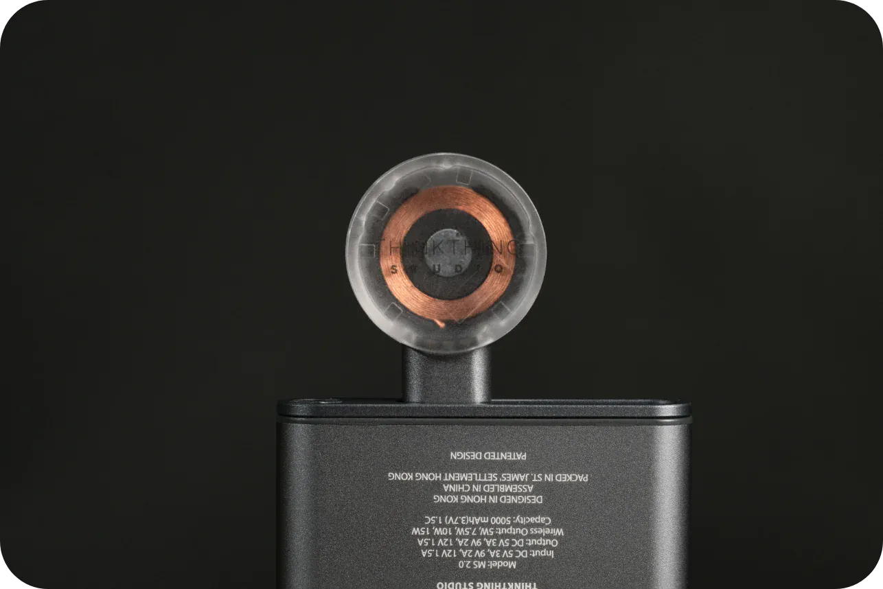 半透明な円形のチャージポートにアルミニウムのボディが合わさったユニークなデザイン。パッケージデザインから半透明にこだわり、製品の世界観を大切にしています。