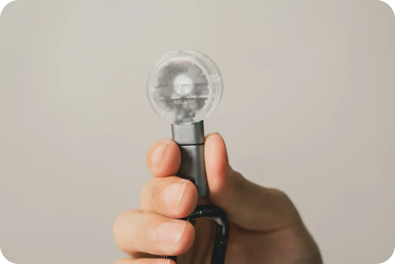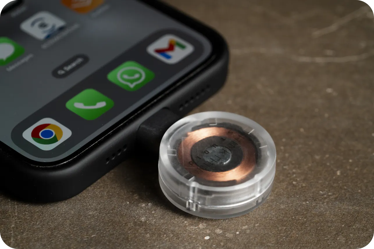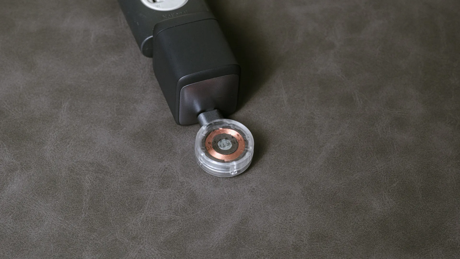 半透明な円形のチャージポートにアルミニウムのボディが合わさったユニークなデザイン。パッケージデザインから半透明にこだわり、製品の世界観を大切にしています。
