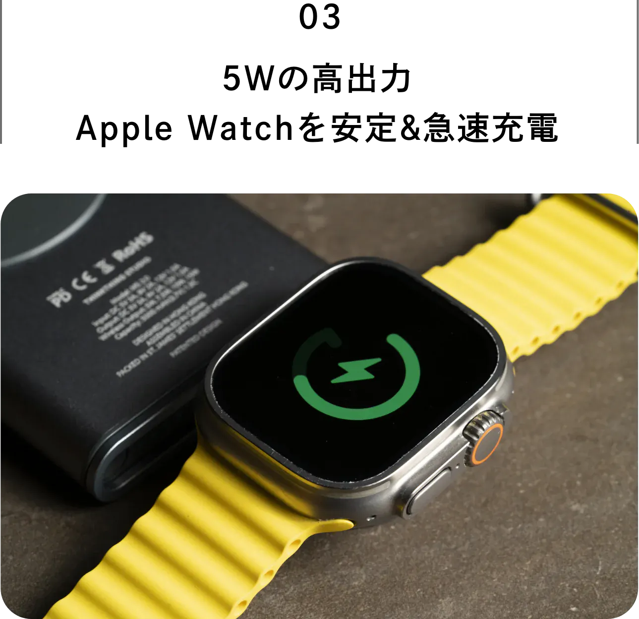 ヘルスケアトラッキング、通知管理、決済など時計の機能を超えて多彩なことができるApple Watchも、Ultraなどの上位モデルを除き、公式のバッテリー駆動時間が18時間と、ほぼ1日1回の充電が必須ですが、他のApple製品と充電端子を統一できないこともあり、専用の充電器を持ち歩かないといけないのが難点でした。