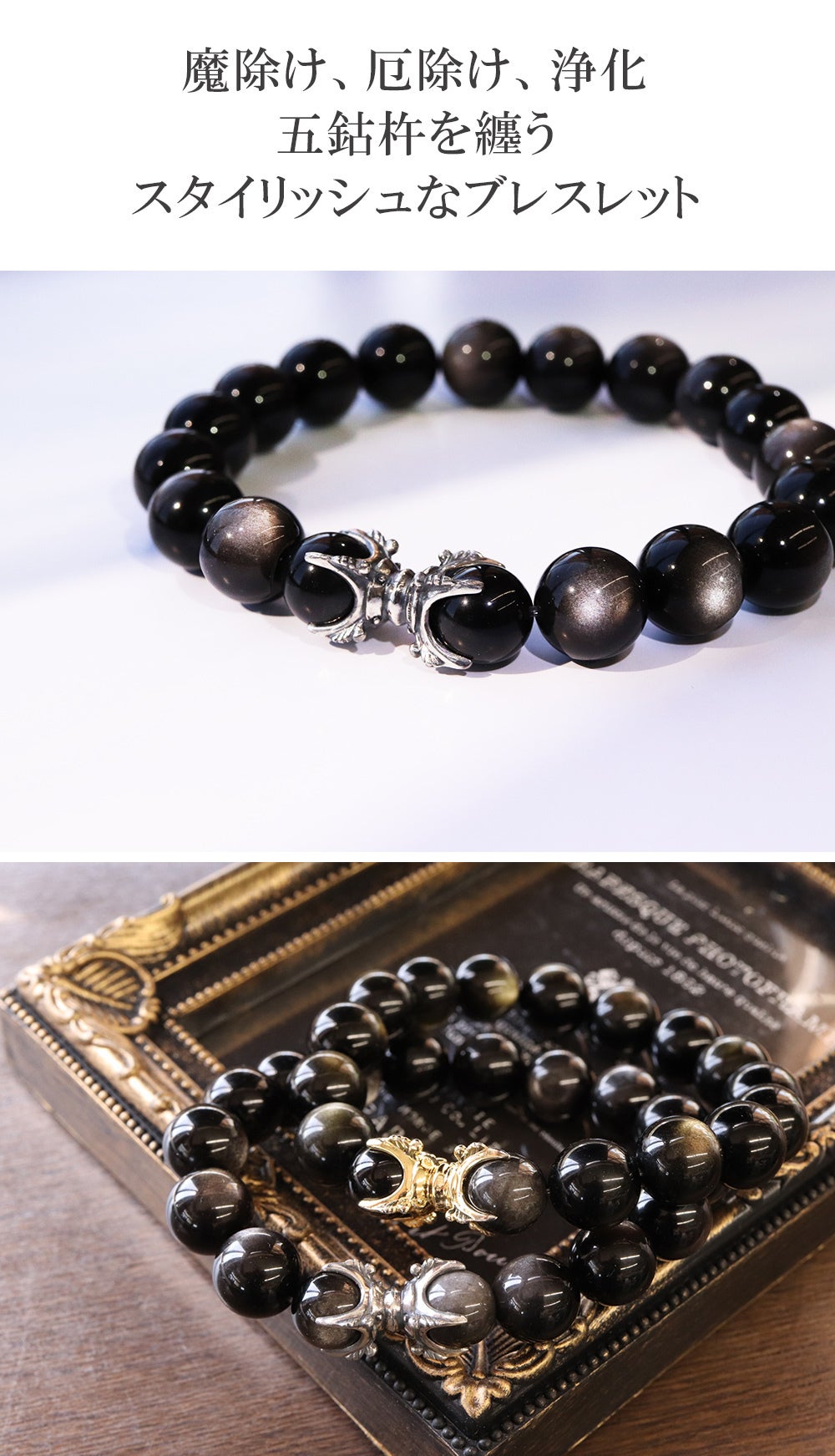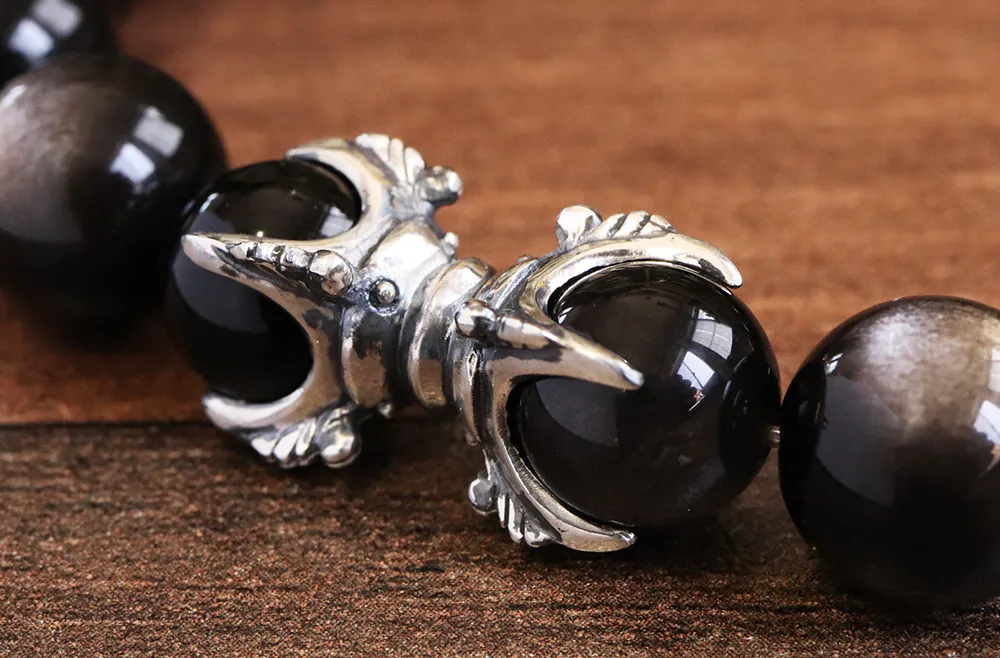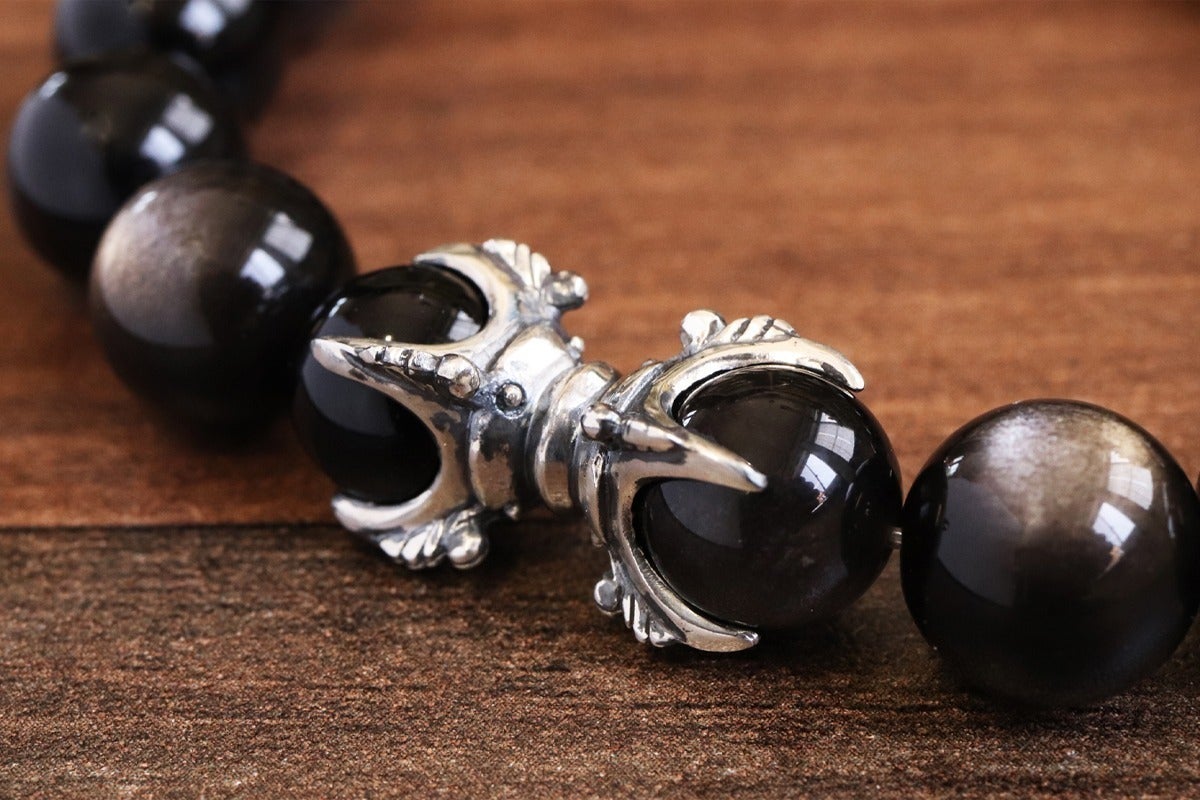 2種類の輝くオブシディアンを纏う銀製の五鈷杵