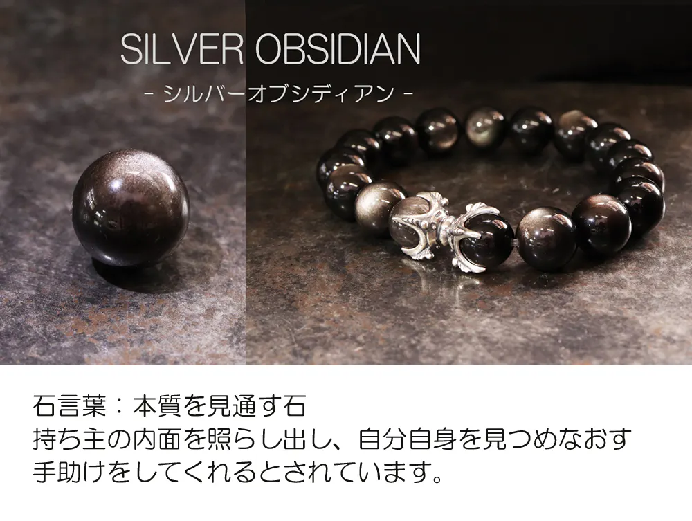 漆黒のなかに優しくうかぶ白銀の輝きが、淑やかな気品を感じさせるシルバーオブシディアン。