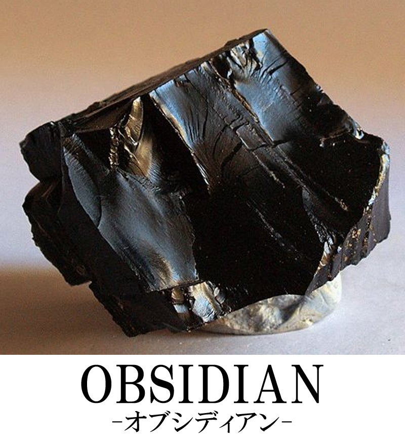 オブシディアンは和名を黒曜石といい、火山岩の一種です。溶岩が急速に冷却されることでオブシディアンが生成されると言われており、固い鉱物と言うよりはガラスに近い性質です。