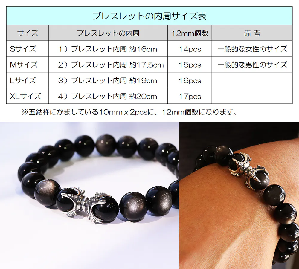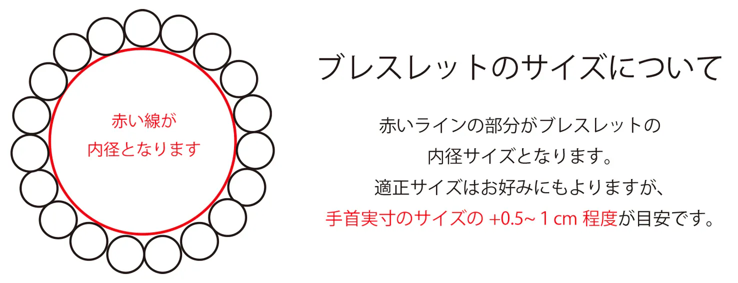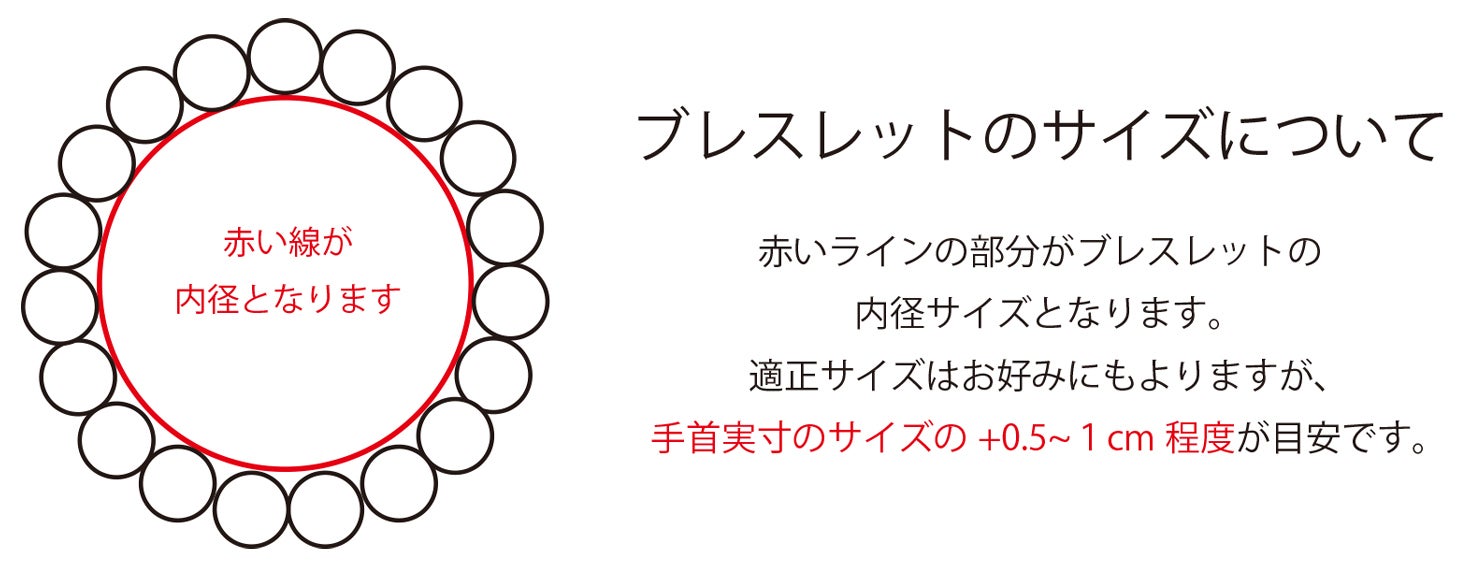 ※ブレスデザイン上で、12mm玉を一つずつ加えサイズ調整をしていますので、細かなサイズ対応はできません。