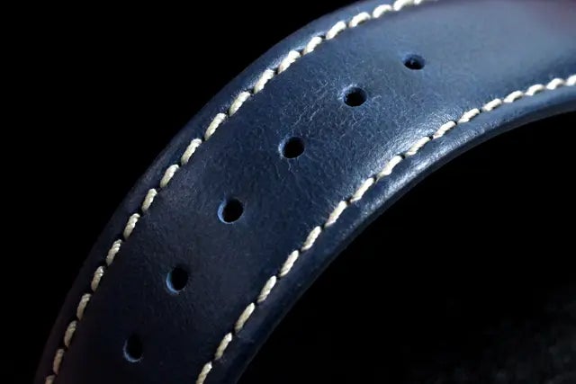ひとつひとつ丁寧に手作業で丁寧に仕上げられたレザーベルト。使えば使うほど馴染み、経年変化を楽しめる味わいある革です。ヴィンテージ感のある暖かい風合いのベルトはミリタリーウォッチと抜群の相性です。