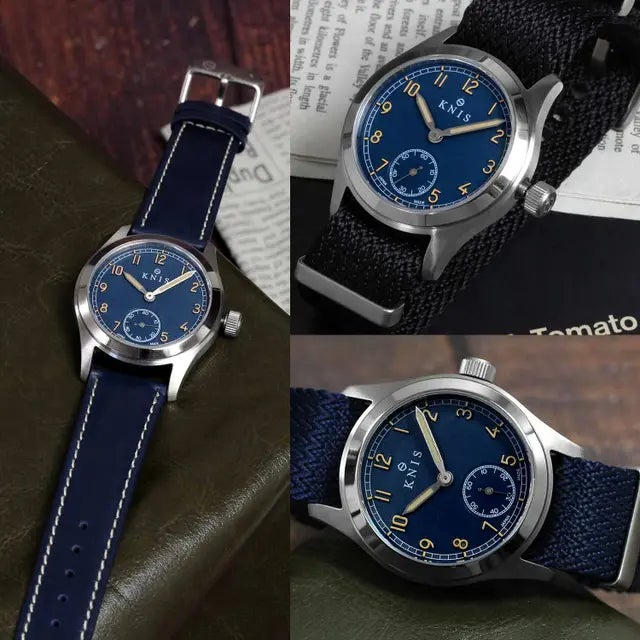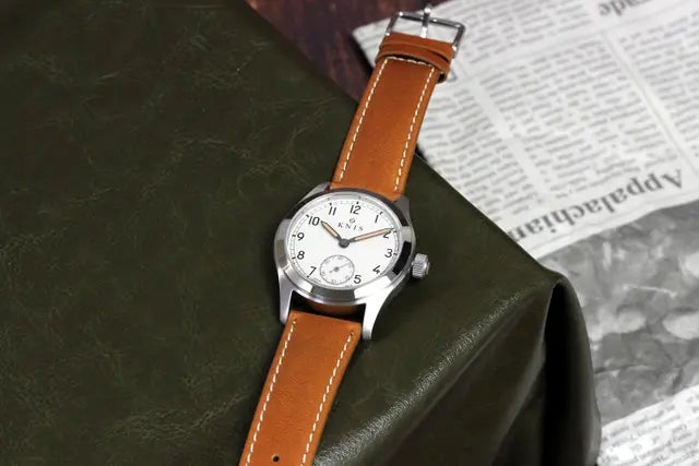 ミリタリーウォッチは、アウトドアやカジュアルなシーンでのされる方が多いですが、KNISのミリタリーウォッチはデザインをシンプルかつ上品に仕上げております。
