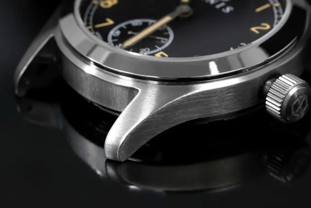 1940年代のイギリス軍のミリタリーウォッチを現代的にアップデート。視認性を確保しつつ、インデックスを太くしすぎないことにより、すっきりとした上品な印象に。ビジネスシーンでも違和感なくご着用いただけるデザインとなりました。武骨ながら上品なデザインで、上質な大人のスタイルを演出してくれるはずです。