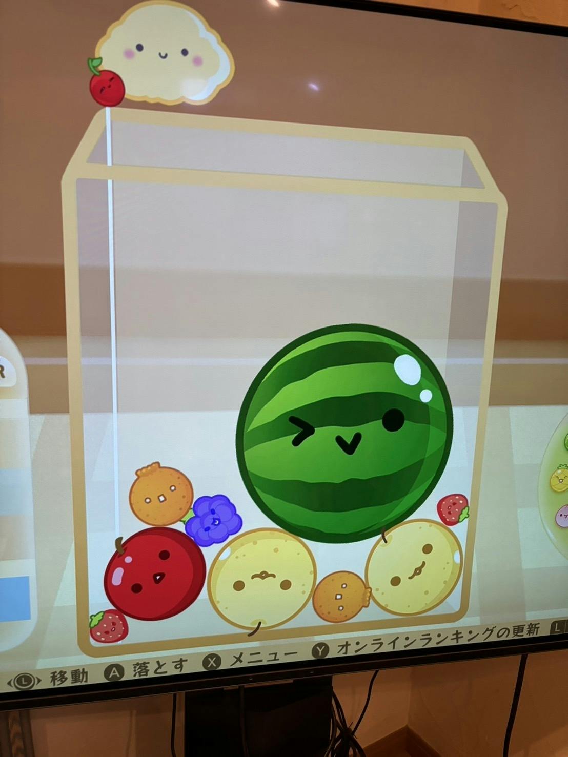 実行委員長は束の間の休息,,,スイカゲームでスイカが出来ました。良い事がありそうです(^^♪ イベント運営はゲン担ぎも重要です!!