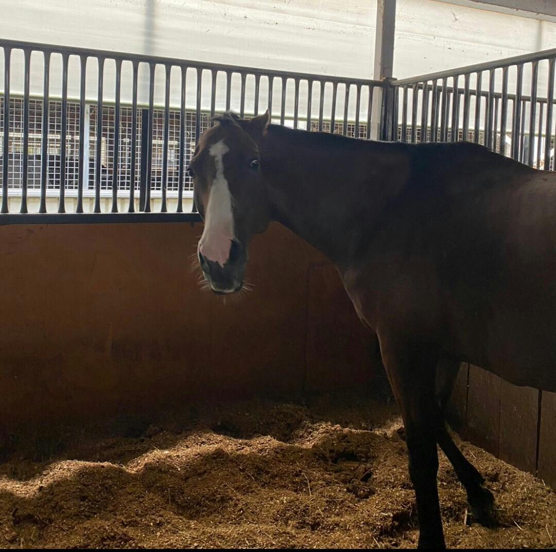 名古屋・川西毅厩舎におりましたが・・出走の為の『ゲート試験』に合格できず又、厩舎の壁蹴りが激しく、腰を痛めていた為に未出走のまま引退しました。