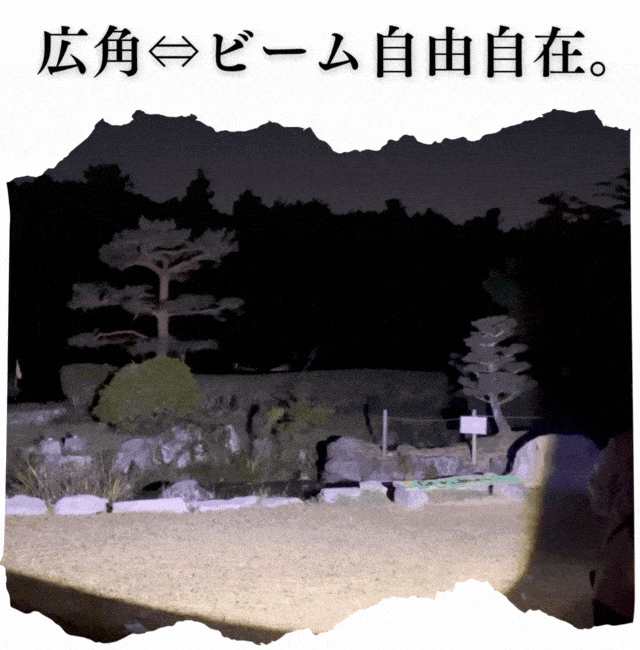 さらに照射を絞ると、遠方の対象物も昼間のように照らされます。