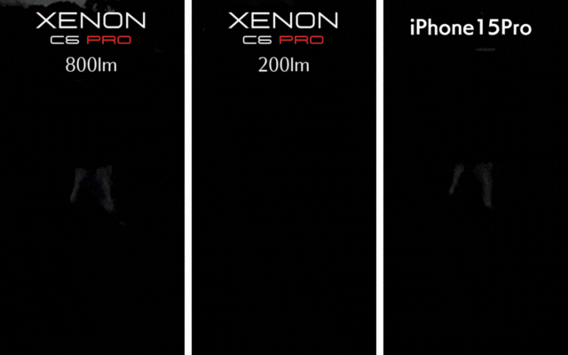一般的な懐中電灯が30~100ルーメン、200ルーメンを超えるとかなり高輝度とされる中、最大800lmを誇るLMP製5050LEDを搭載した『XENON C6Pro』は、小型ながら広角に光が広がる独自設計により、圧倒的な視認性を実現しています。