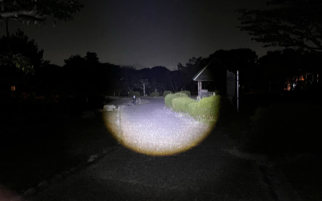 Highモード(800lm)での照射。広域を均一に照射する独自構造はXENON C6Proの大きな魅力。