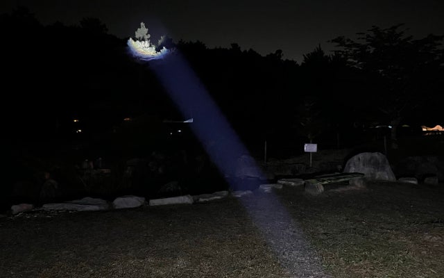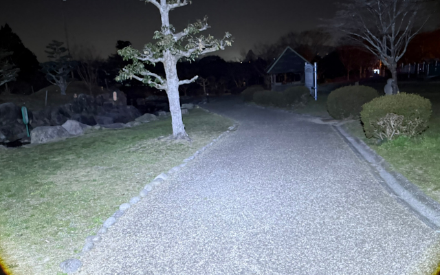 半分程度まで照射を絞ると、中央に光が集中し150メートルほど遠方も明るく照射。