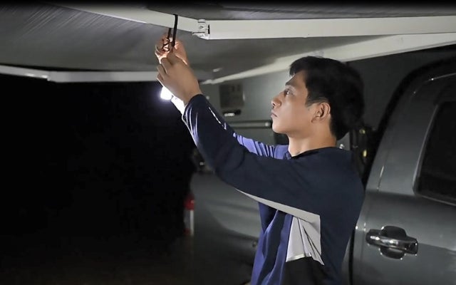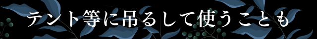 広角90度の拡散性を活かし、ランタンの代わりとしてテントに吊るして使用することも可能です。