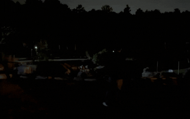 ビーム照射なら山頂の木々も昼間のように照らします。