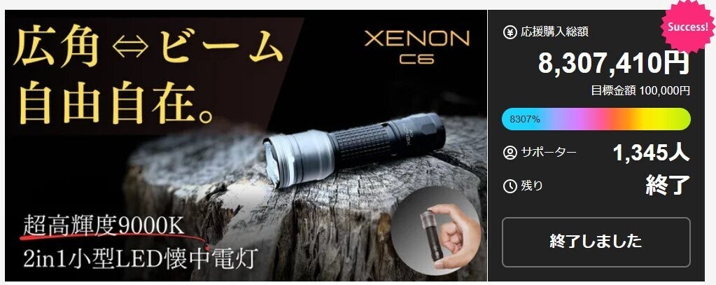圧倒的な照射力とミニマムボディ、この実用性に優れた『XENON C6Pro』が、支援者の皆さまの生活を豊かにするガジェットのひとつとなれば、私たちにとってそれに勝るものはありません。