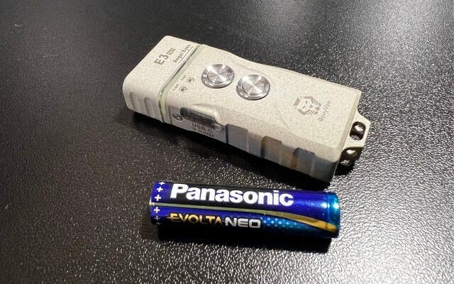 また、E3Plusは単4電池の代わりにエネループなどの充電式電池の使用も可能ですので、普段はエネループなどの充電式電池を使い、内蔵バッテリーは強い明るさが必要なときや充電式電池が切れた際に使用するといった使い方も可能です。